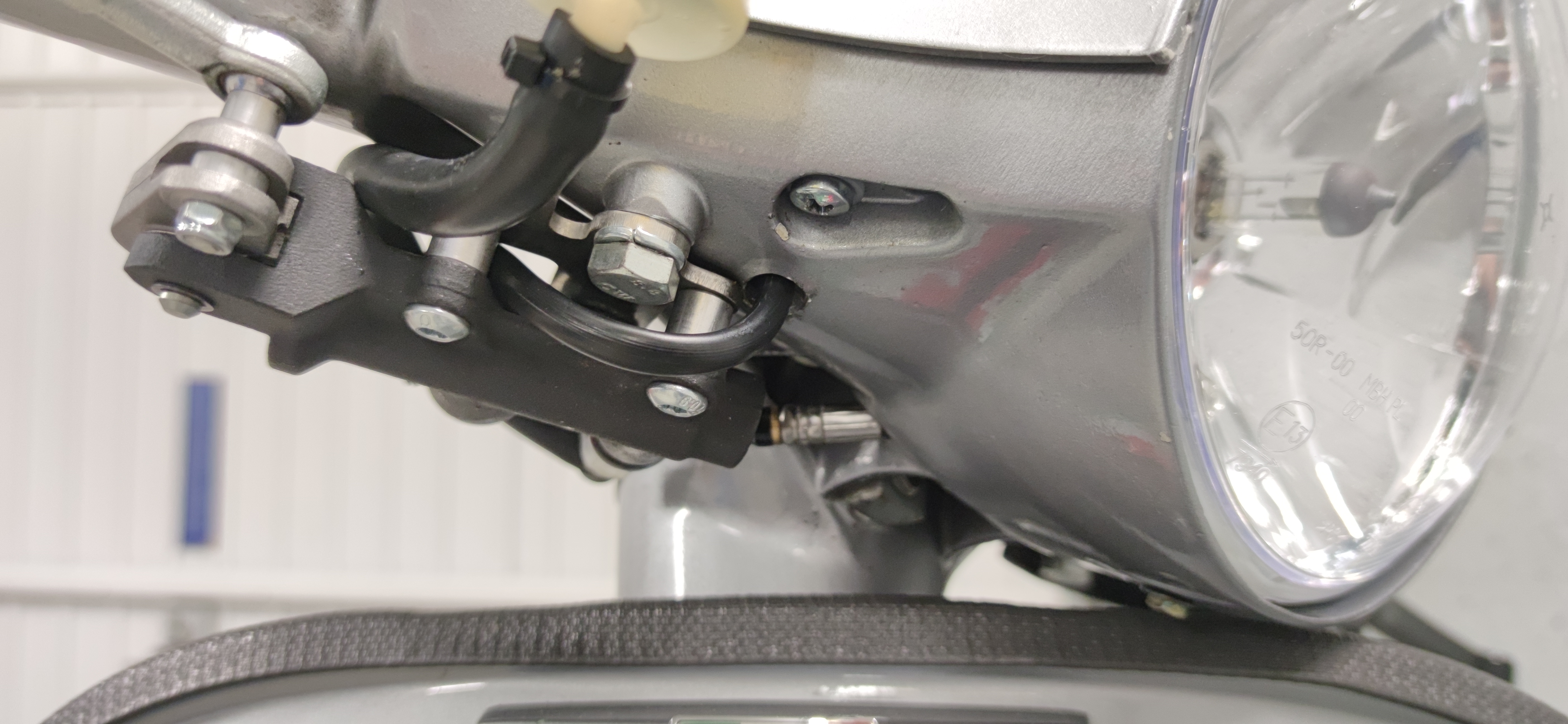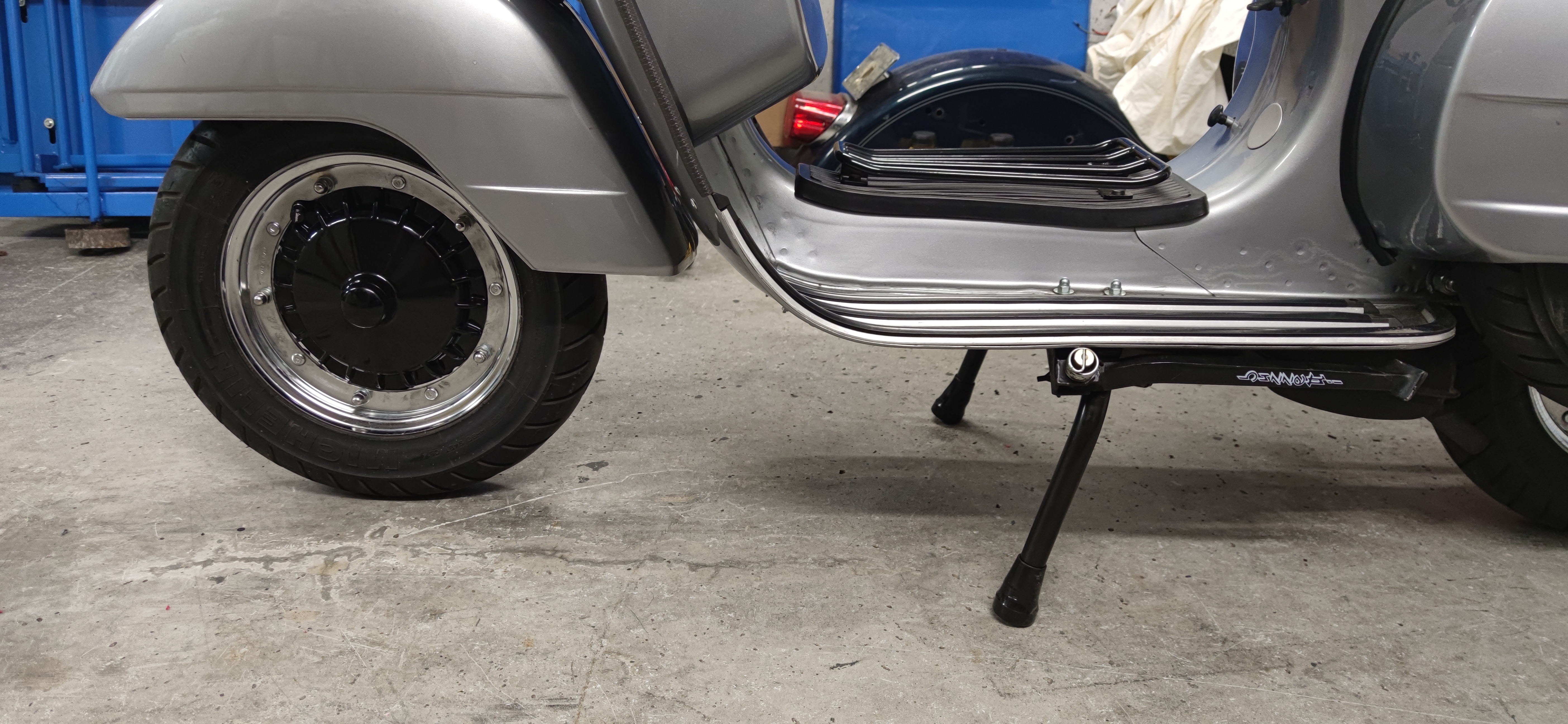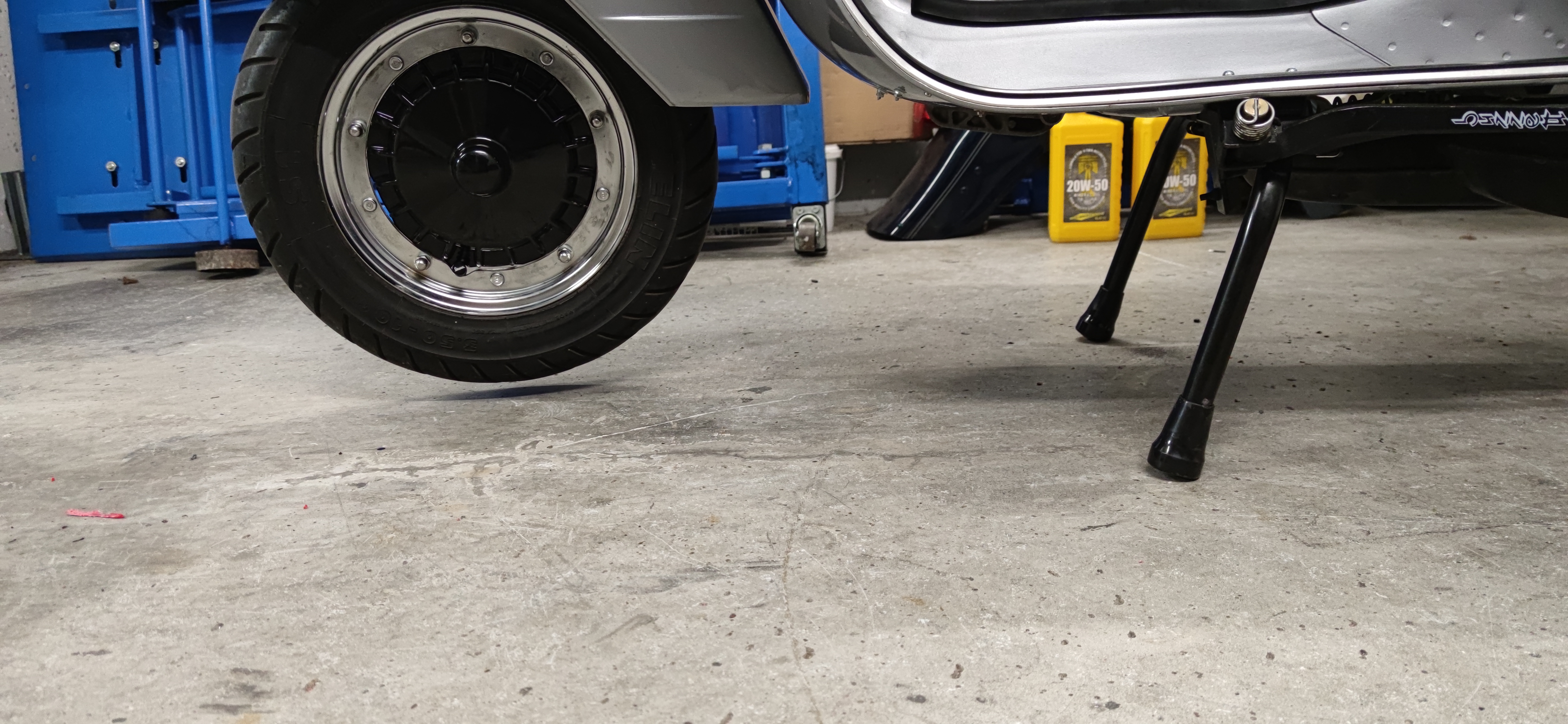 Da meine Gabel vorne um 40mm gekürzt ist, war auch der Hauptständer zu lang und die PX stand zu hoch vorne. Also habe ich den Hauptständer gekürzt. Leider etwas zuviel, so das sie nicht mehr sicher stand.