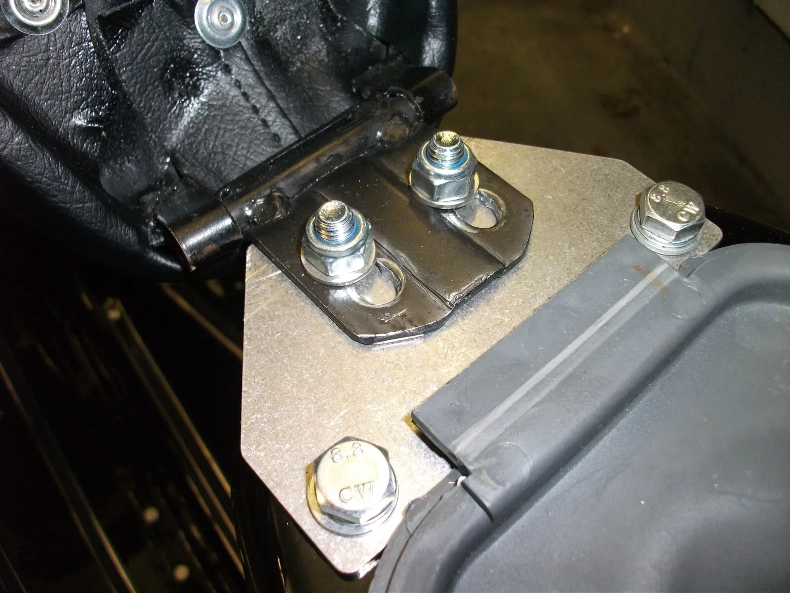 Habe gestern meine Sitzbank bekommen. Der mitgelieferte Adaptersatz, passt nicht so wie ich es möchte. Also ich es mit zur Arbeit genommen und bisl rumgebohrt und gesägt usw. Hab in das Blech wo der Zapfen rein kommt nen neues Loch gebohrt, was aber überhaupt nicht mittig ist.