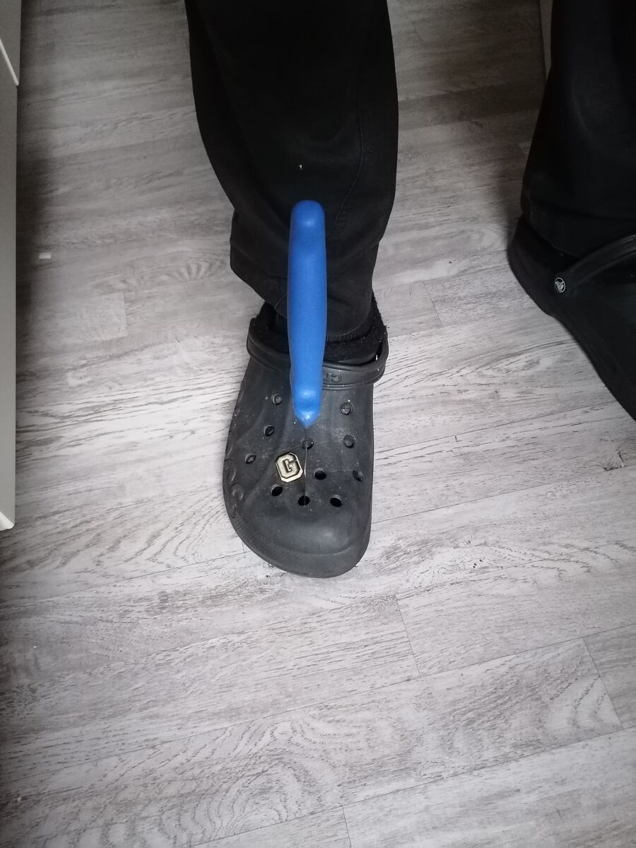 Das Messer mit der Spitze zuerst runter gefallen und steckte dem armen Kerl in der Schulter. Seitdem liegen bei uns keine Messer mehr rum, werden nach dem benutzen direkt weggeräumt.