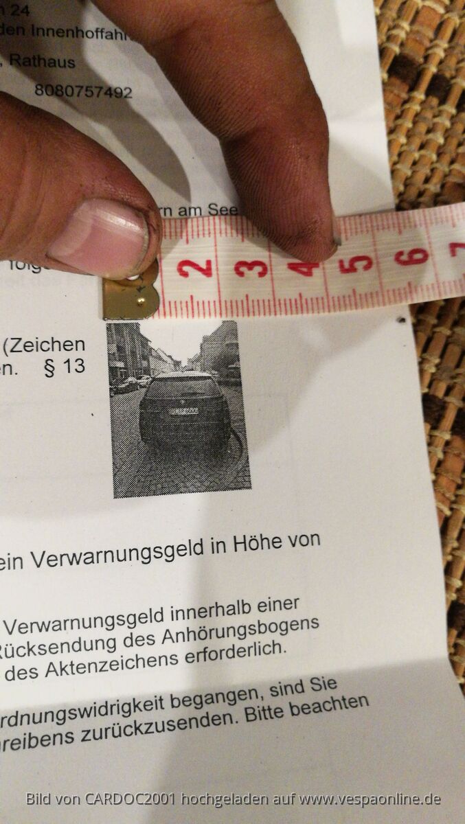 ich hatte das mal mit der 80er Vespa. Bekomme aus Bingen ein Knöllchen wegen falschen Parkens.