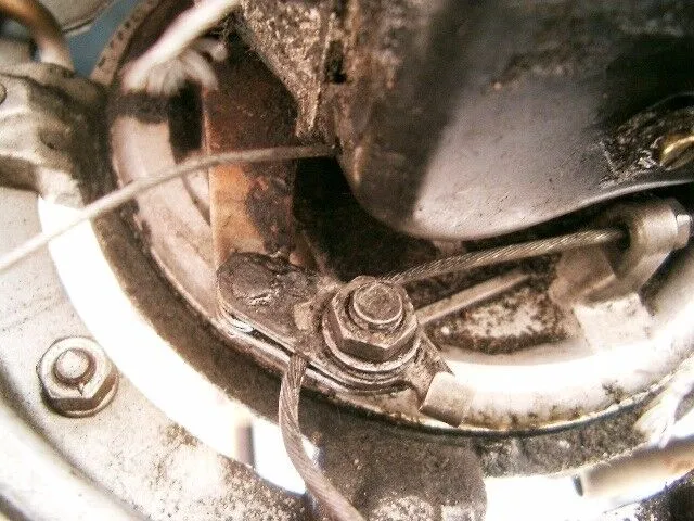 liege gerade unter der vespa und sehe die metalltülle am hinterrad dort gibt es dann ein 1 cm dickes gewinde mit einer schraube vorgelagert. an beidem habe ich gedreht, doch wenn ich nun bremse wird das kabel in die tülle gezogen und verschwindet mit jedem bremser etwas mehr... irgendwie ist das nicht fest. und bremswirkung auch gar keine...also minuten später...