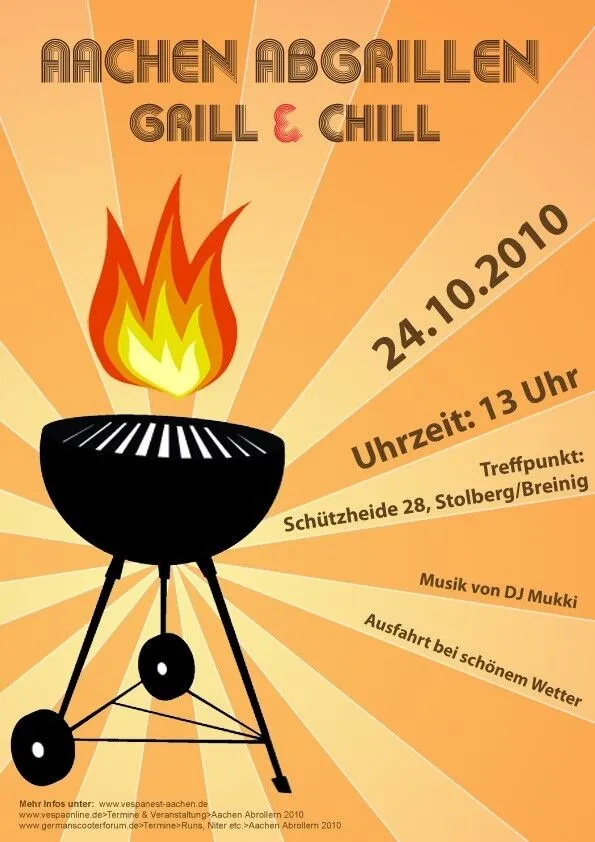 Wir werden uns zum gemeinsamen Grillen und Quatschen bei guter Musik treffen!