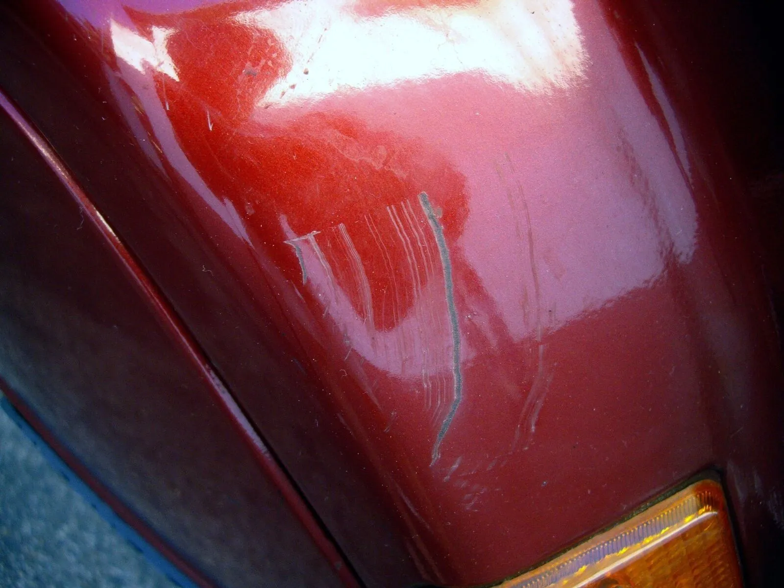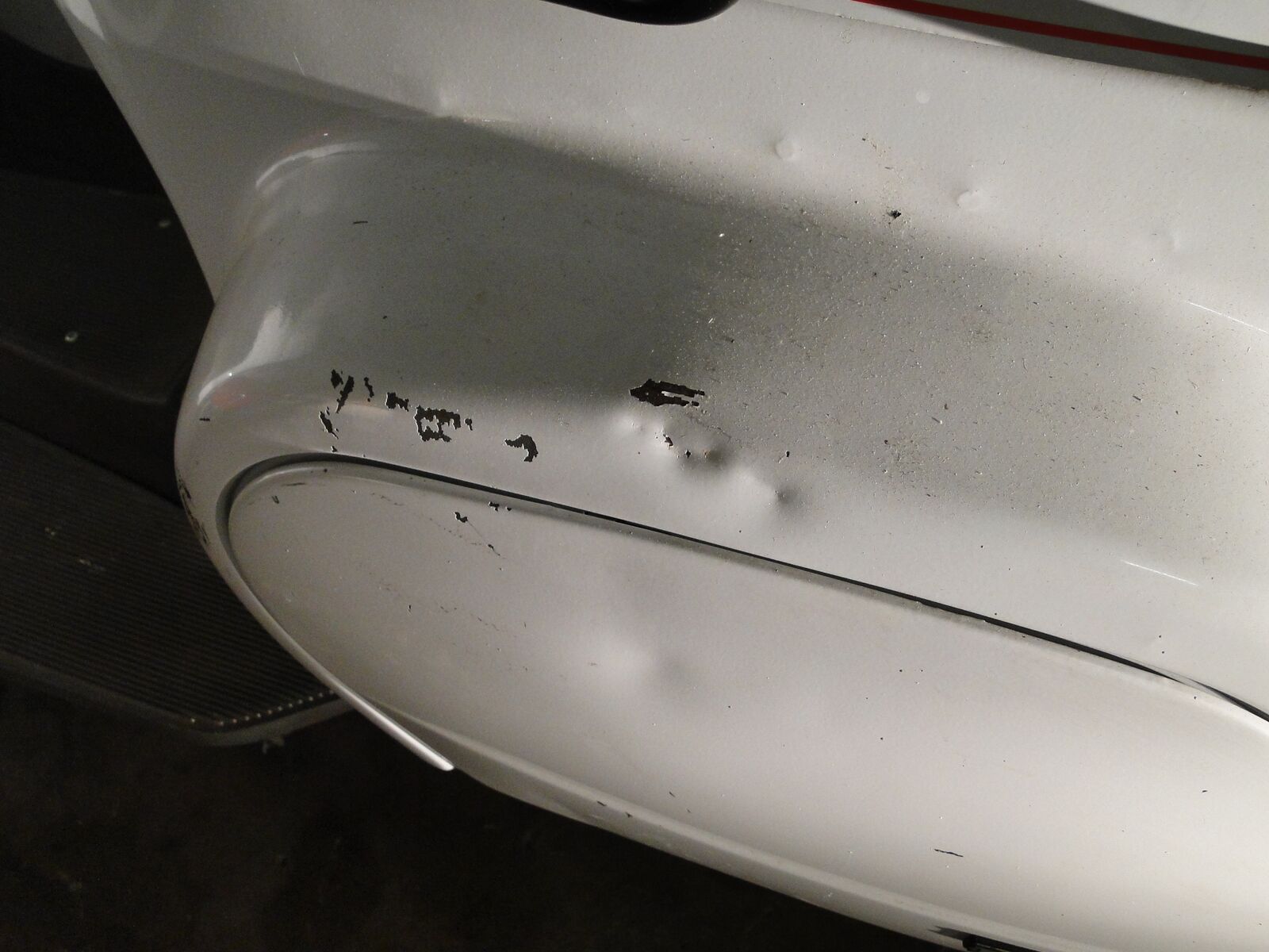 ein paar kleine Macken und Dellen am linken Kotflügel und am Schutzblech vorne.
