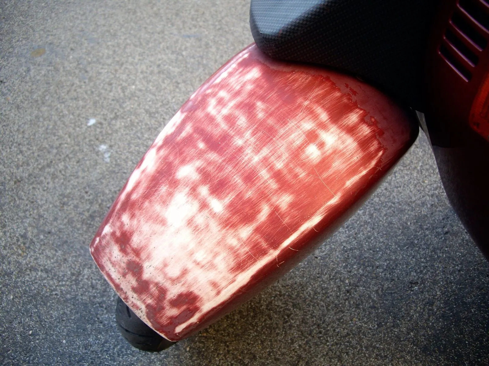 Die Macken kommen wohl von Sachen, die draufgefallen sind. Sturzschäden sind es definitiv keine, da keine Rutschspuren. Hab die Vespa übrigens so gekauft, sind also keine neuen Schäden dazugekommen und hab selber nur max. 100 km draufgefahren.