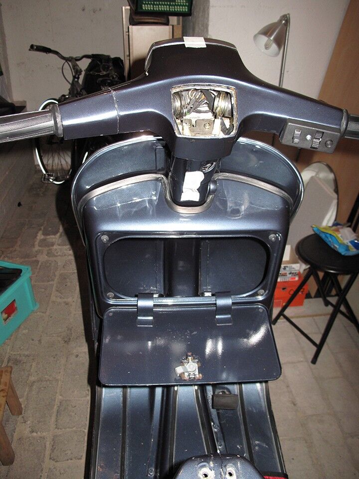 Der Vorbesitzer hatte ihr noch eine "Italien"-Restauration inkl. Lackierung über sämtliche Gummiteile spendiert, die sich langsam auflöst und mich zum Handeln zwingt. Das 80er Jahre Tuning-Kit (PX-Kaskade, Fox-Gummi-Stoßfänger an den Backen) hab ich gleich zu Beginn entfernt und seitdem entsprechende Bohrlöcher an den unnötigsten Stellen