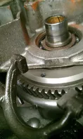 Hier sieht man den unteren Seegerring und die untere Distanzscheibe...den müsst ihr zum Schaltklauen wechsel natürlich auch demontieren. (Mache ich auf den Bilder nicht, da meine klaue schon neu ist)