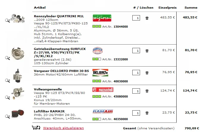 und beim parmakit habe ich für ~350€ nen kompletten direktangesauten alu zylinder mit ass und membrane. unterm strich genau gleich teuer, außer dass ich beim pinasco warscheinlich mehr leistung habe ![]()