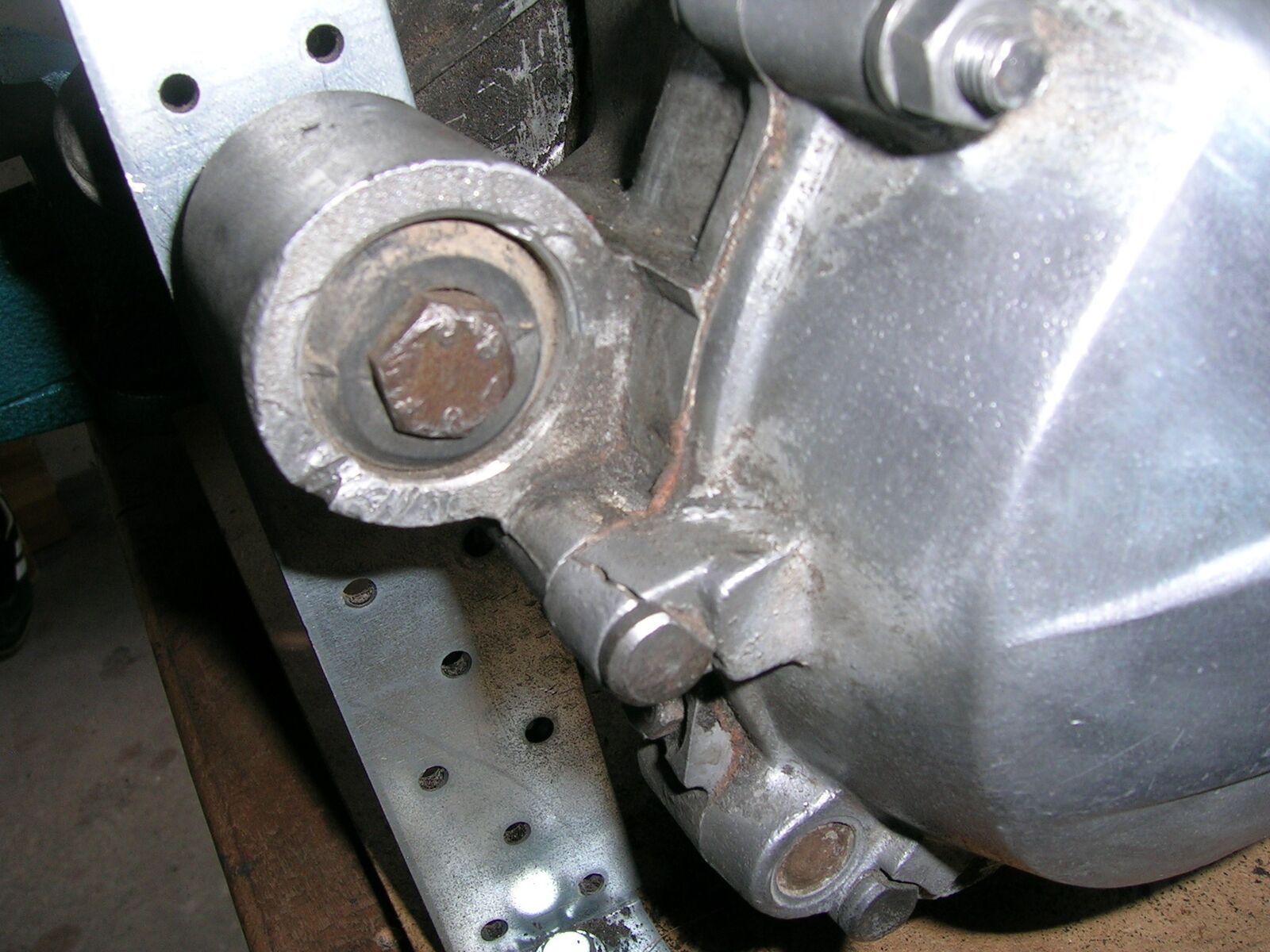 Zum anderen ist unterhalb der Befestigung für die Feder, bei der Motorblockverschraubung ein Riss.