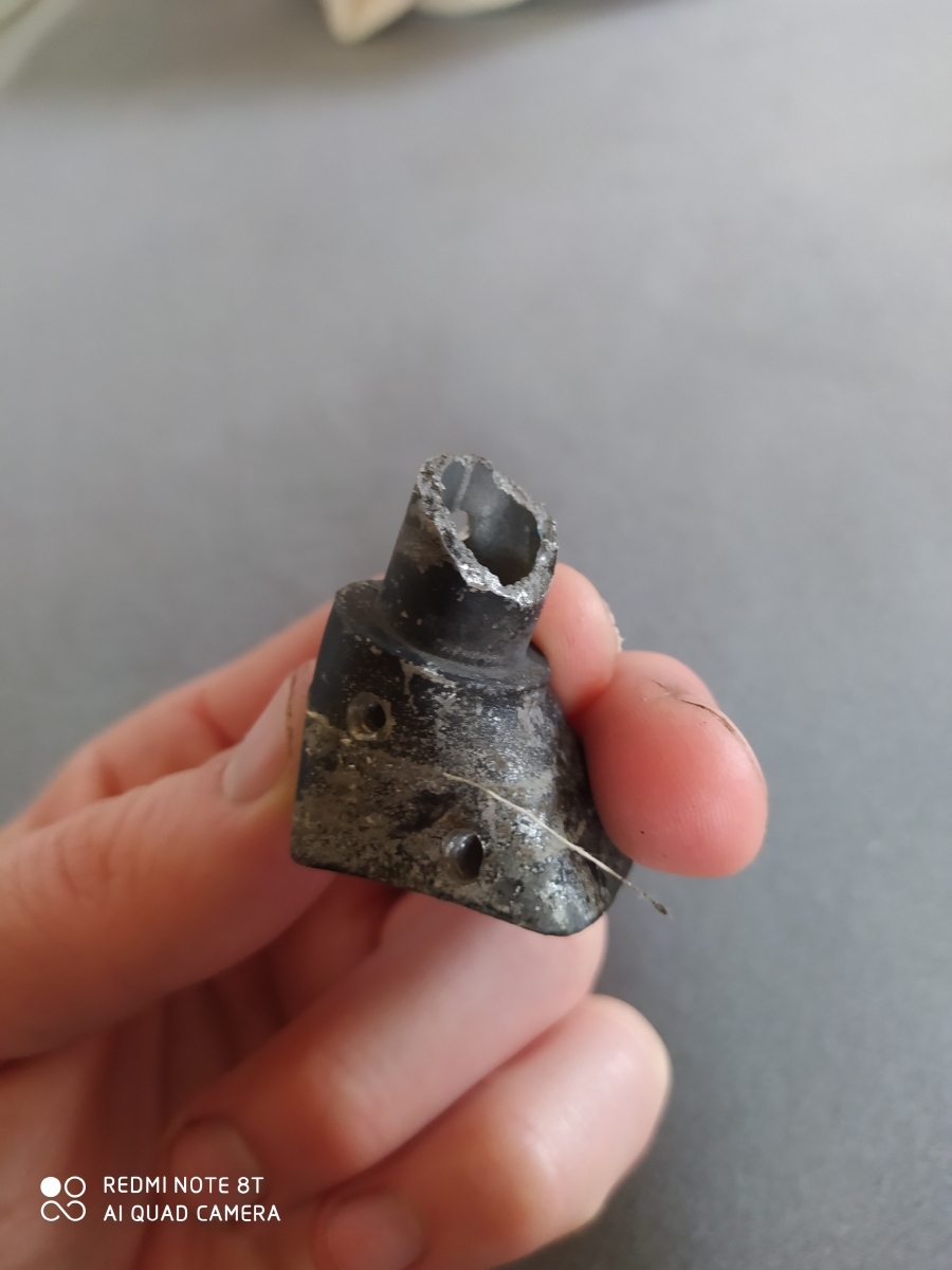 - Direkt (fast perfekt zentral) zum Auslass zeigend und gegenüber an den Überströmern sind deutlich mit dem Finger spürbare und auch sichtbare Klemmspuren (also nicht an, sondern zwischen den Stehbolzen geklemmt)