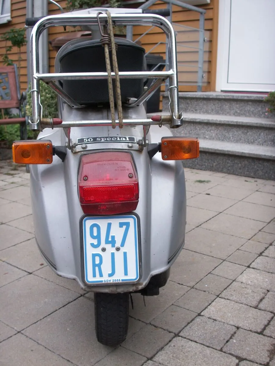 Ich glaube aber schon, das die 50 Special mit 4-Fach Blinkanlage, 12V und Chrom-Gepäckträger ein paar Mark mehr als die Standard Vespa gekostet hat. Ich hätte mir aber im Nachinein gewünscht das er die mit den Lenkerenden-Blinkern, Blechkaskade und dem Rundkopf genommen hätte. Die sieht irgendwie noch mehr nach Classic Vespa aus als dieser 80er Jahre STVZO DIN-Norm Riesenblinker-Roller. Mit der "Streber-Vespa" war ich damals in der 10ten Klasse bei der "Hercules Supra 4 und Kreidler Florett-Fraktion" schon unten durch und wurde mitleidig belächelt - aber das ist ein anders Thema...