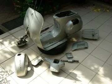 vespahansi: Ja, der O-Lack in silber ist runter, der war total matt, war an vielen Stellen abgeplatz und verkratzt. Ausserdem hatte mein Vater in der Vergangenheit da öfter mit ner Spraydose ausgebessert (nicht immer mit dem passenden Farbton). Der neue lack ist dem alten noch recht nah, aber eben doch anders. Das ist das einizige was nicht mher 100% original ist. mal Hand aufs Herz, das silbermetallic von Piaggio taugte wirlich nichts, da waren die Uni-Farben doch echt besser.