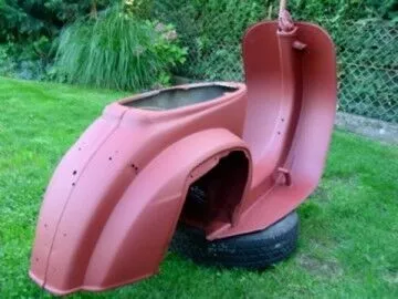 2006 in der Grage wieder ausgegraben und komplett zerlegt, Sandstrahlen, grundieren, neu lackieren, alles reinigen und erneuern und wieder zusammenbauen. Originalfarbe war Silber, jetzt neu: Panacotta metallic (OPEL ASTRA GTC - siehe Foto) passt super und sieht fast original aus, weil die Farbe genau zwischen Silber und Gold liegt. Muss man live sehen, wirkt auf den Fotos nicht so. Hier die Bilder dazu: