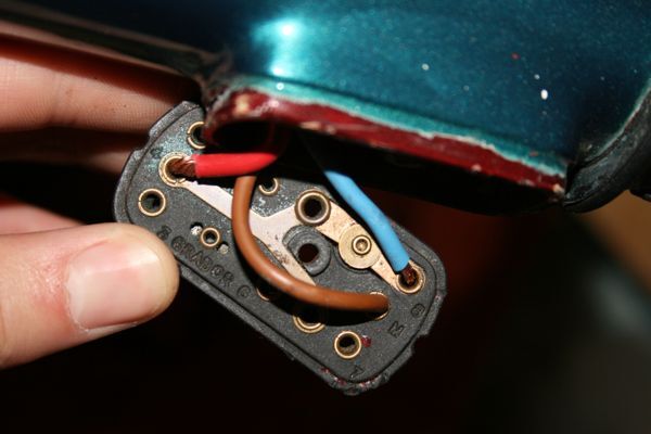 am ende mit dem grauen schlauch gucken drei kabel mit diesen runden kontakten raus. schwarz, rot und grün.