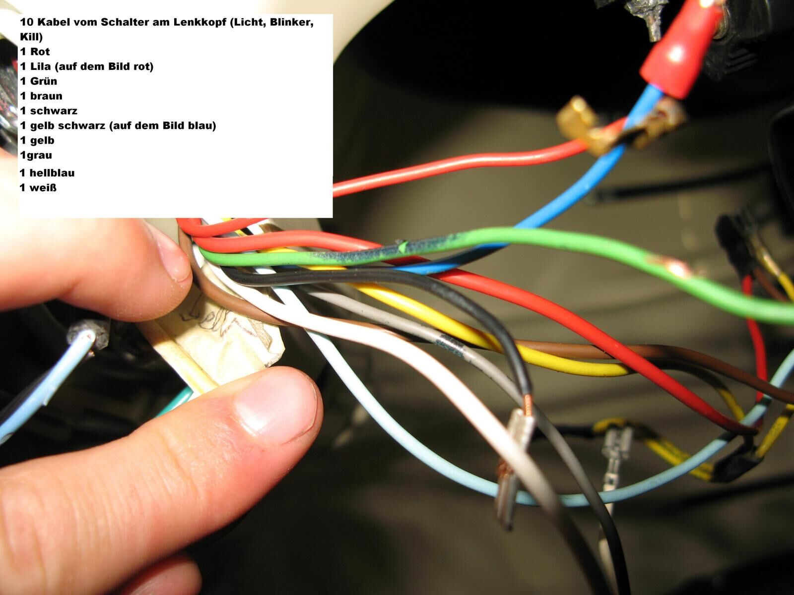 also bremslichtschalter lassen und ein neues Kabel vom bremslicht zur zgp ziehen. geht klar. neues blinkerrelais. geht klar. Fernlicht hat mein gutes Stück erst garnicht. also gibt es am schalter nur an oder aus was die sache hoffentlich einfacher macht. desweiteren gibts nur noch den schalter für den Blinker (rechts links) und seitlich den Kill. Bilder findest du hier: lichtschalter vespa 50 n special der nippel links neben dem lichtschalter gehört zum kill. glkaube das wars ersteinmal. bin dank dir zuverlässig, dass ich mein stück bald endlich auf den deutschen straßen bewegen darf :d -