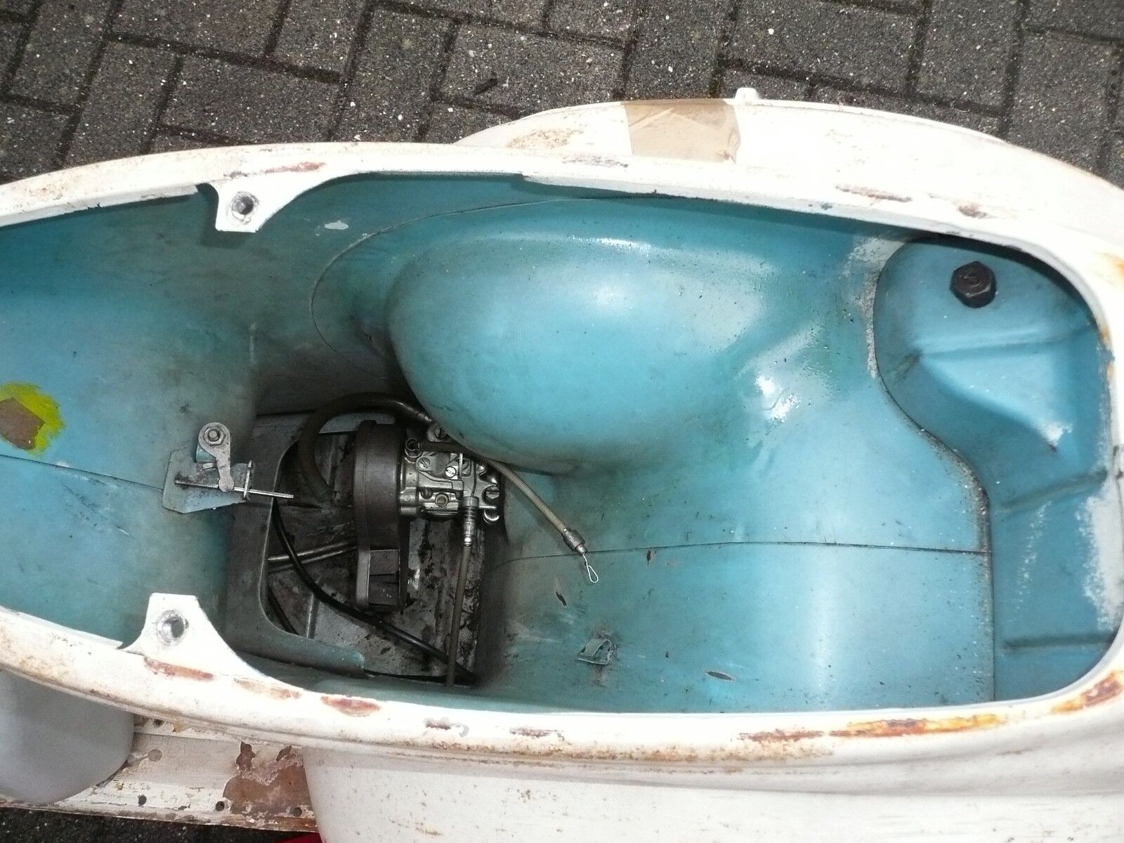 So ich habe die Vespa nun komplett zerlegt, Der Rahmen ist nach erster Untersuchung wirklich gut.Leider musste ich feststellen das am Unterboden mal ganz schön schlecht geschweisst wurde. Also halten tut es wunderbar, Trittbrett ist auch sonst gut. Nur stören tut es mich weil es einfach beschissen aussieht!