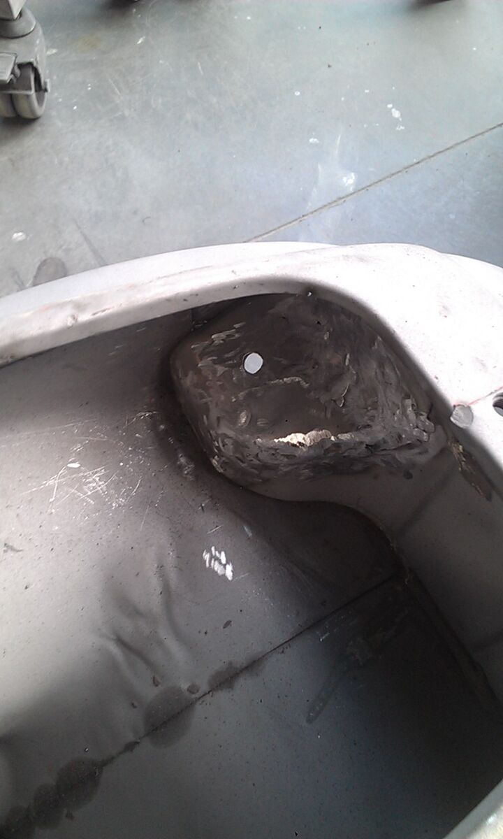 Ich würde die Kiste komplett auseinander machen und strahlen lassen, Du weisst ja nicht was für ein Pfuscher da am Werk war. Ich hab schon alles gesehen, ich mach dir ne Vespa komplett ohne schweissen wieder schön, das kann man alles mit Spachtel hin pfuschen!