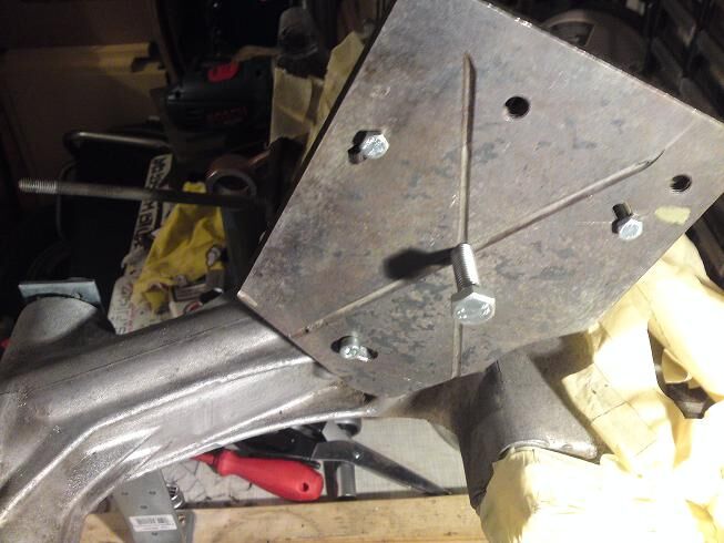 einfach ne stahlplatte genommen die man so rumliegen hat, in der mitte ein 10er gewinde reinschneiden und ne 10x45 schraube o.ä. eingeschraubt.