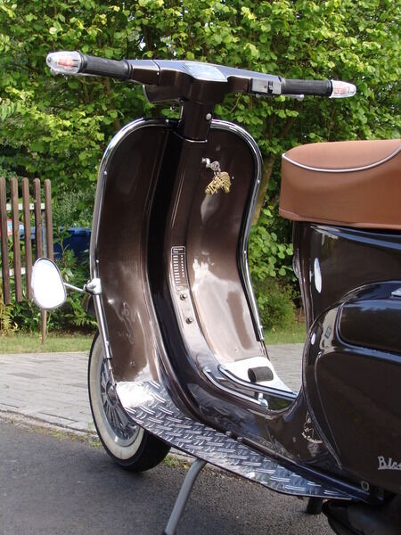 Er hat den U-Bodenschutz ab der Fußbremse bis in den Motorraum gesprüht. Das Werkzeugfach und der Tank/Vergaserraum sind mit Unterbodenschutz versehen.