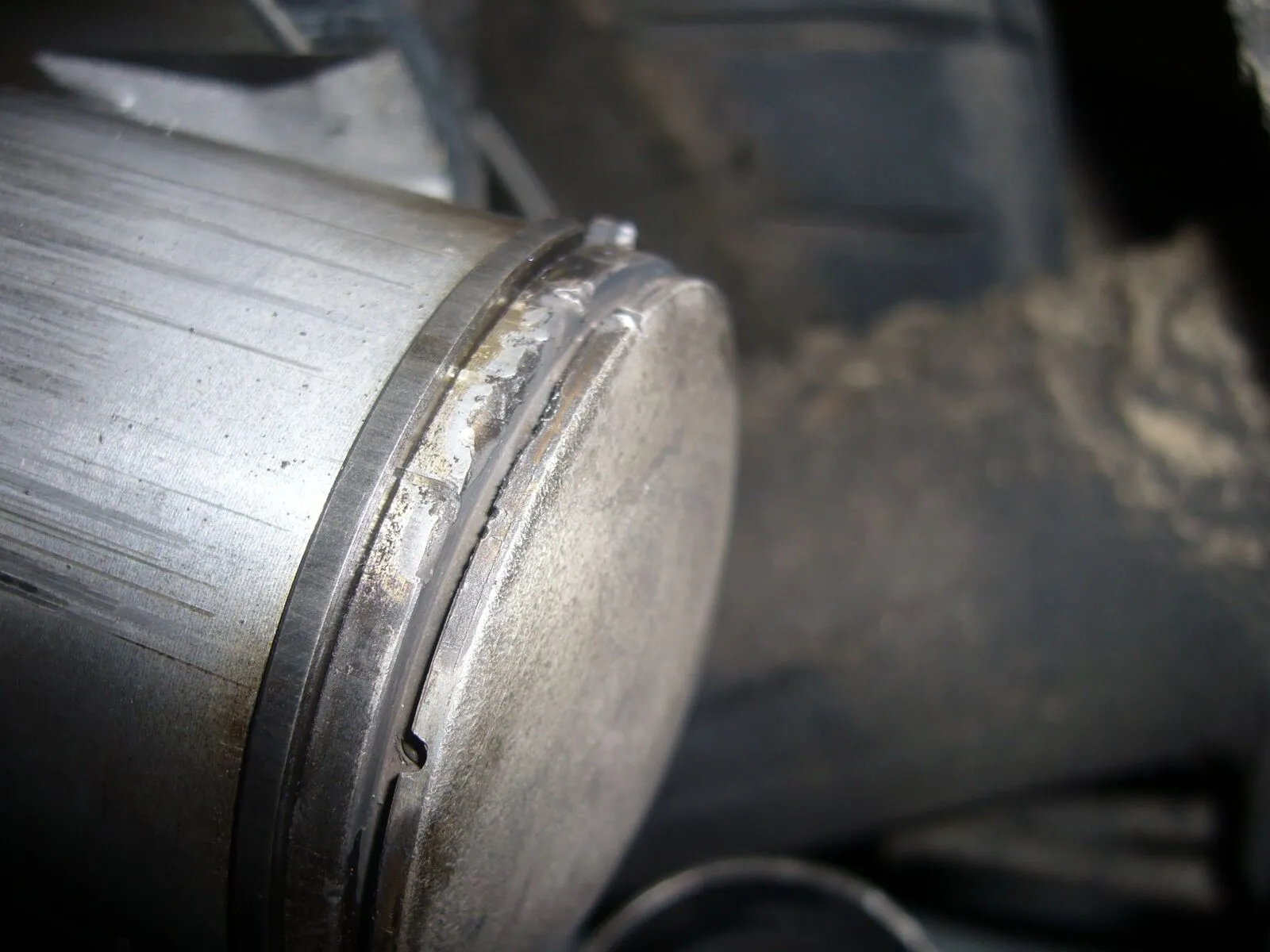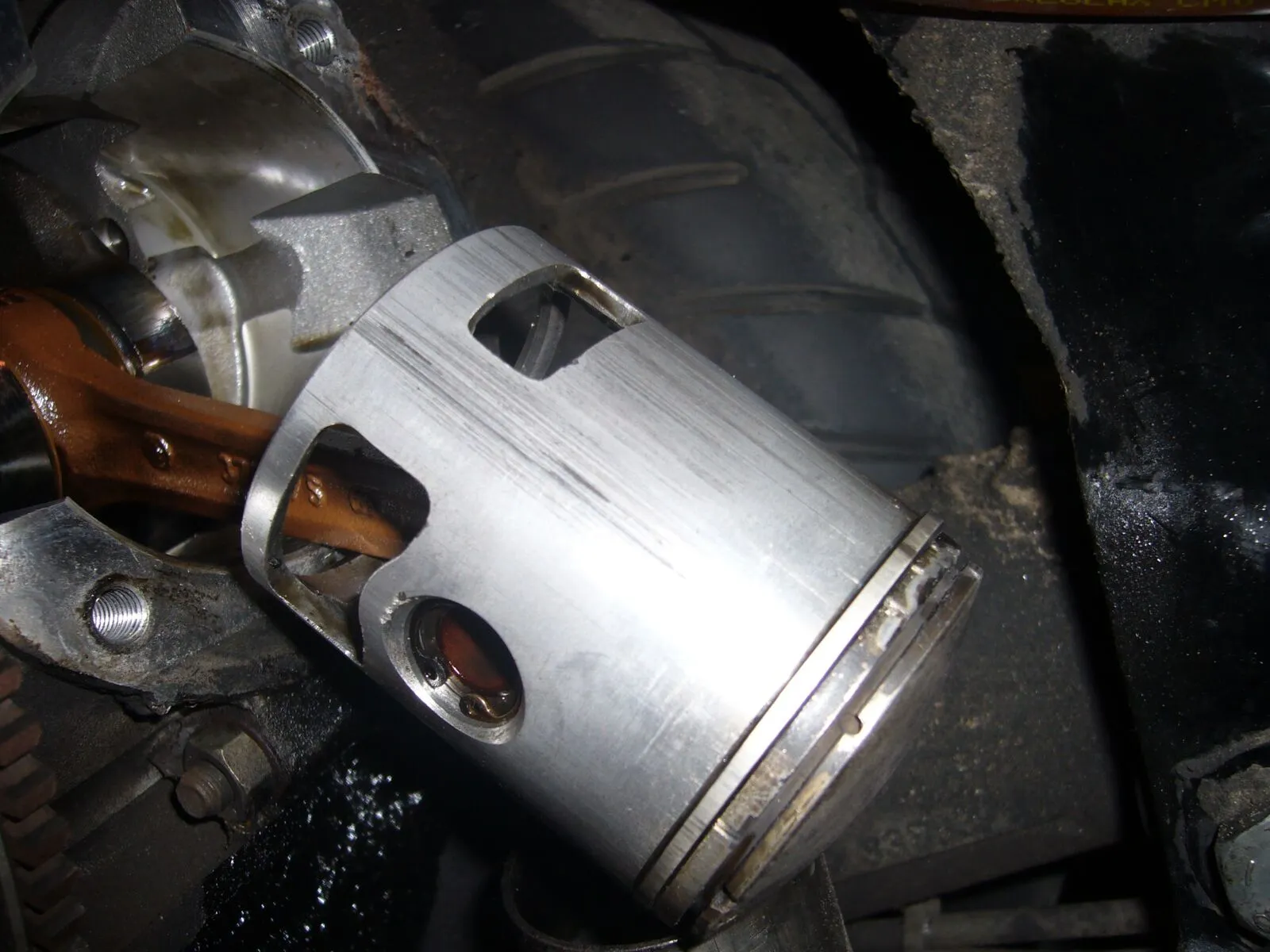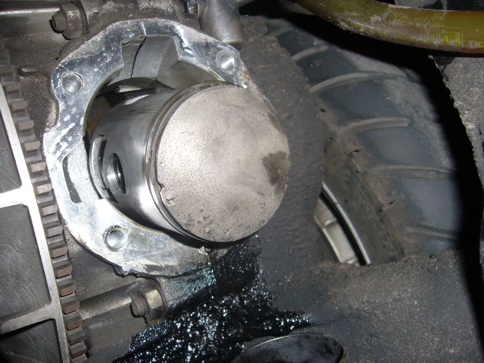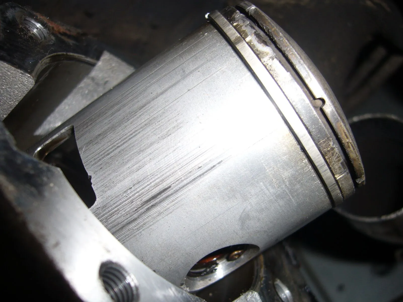 vor kurzem ist mir das gewinde am zylinderkopf für die zünderkerze kaputt gegangen. In dem zug habe ich gleich mal den ganzen zylinder abgenommen und dabei festgestellt das ein paar etwa 0,5mm tiefen riefen im kolben sind. Außerdem hats ein paar spähne oben auf dem kolbenkopf eingeschlagen. hab euch mal bilder davon gemacht.