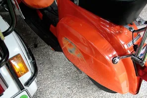 Ich hatte letzte Woche einen Unfall mit der 50 N Spezial und hab' mir dabei ziemlich die linke Seitenbacke zerkratzt und die Kante des Beinschilds verbogen. Jetzt suche ich jemanden, der mir 1. aus der Seitenbacke fachmännisch eine Beule rausdrückt und 2. die Kante wieder fachmännisch instandsetzt. Ziel ist es, die Vespa erst zu richten und hinterher zum Lackierer zu geben. Ich habe leider weder das Werkzeug noch die Fertigkeit für solche Karosseriearbeiten.