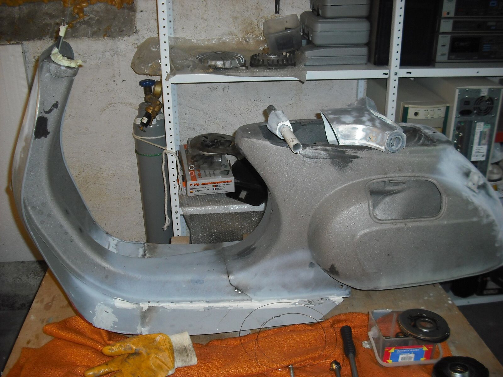 Vespe wird jetzt gefüllert und geschliffen, danach kommt die wohl wichtigste Frage, welche Farbe................