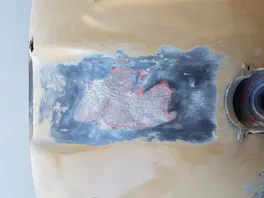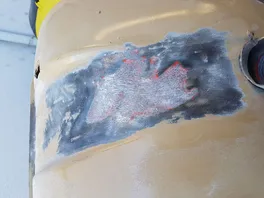 gefunden wurde unter einer dicken lage spachtelmasse eine noch dickere lage gfk spachtel.