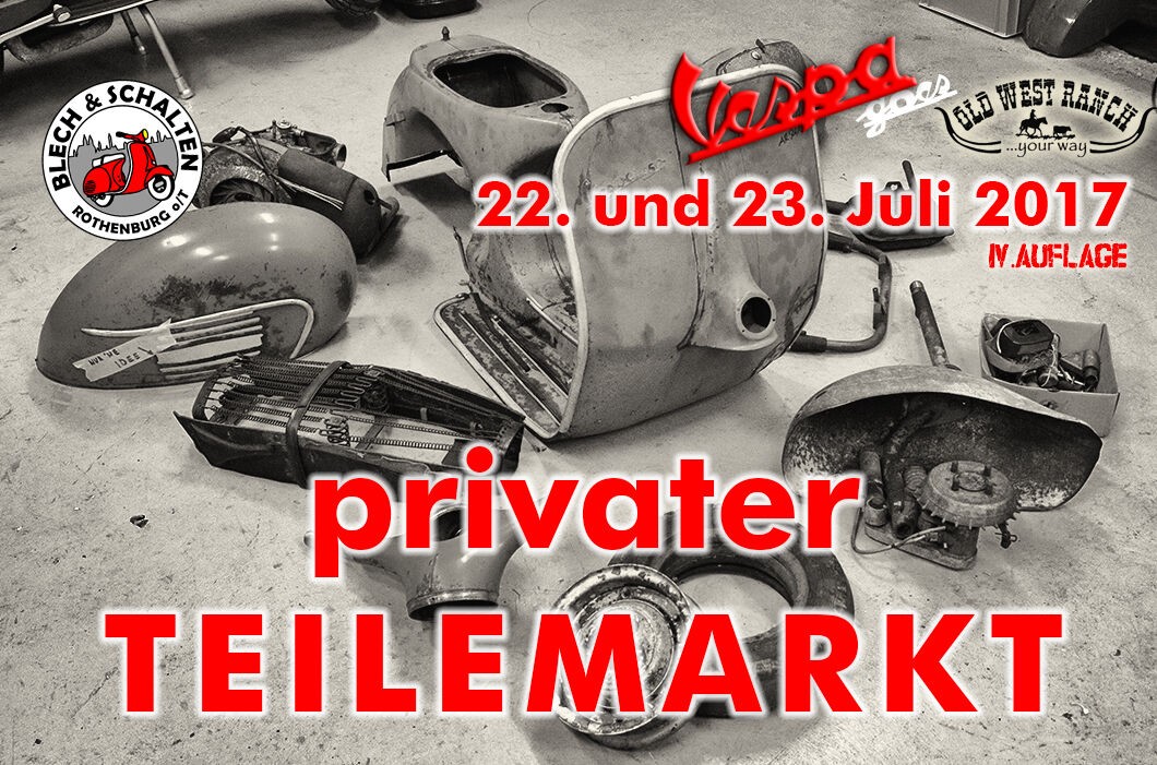 Wir möchten heuer an unserem Treffen nochmal den Versuch eines privaten Teilemarktes machen. Wer Vespateile oder -zubehör verkaufen will, der darf das also gerne machen. Wir bieten nur die Möglichkeit, organisieren muss das der- oder diejenige aber selbst. Dafür gibt es auch keine Standgebühr oder ähnliches. Nichts Gewerbliches, nur von Privat an Privat.