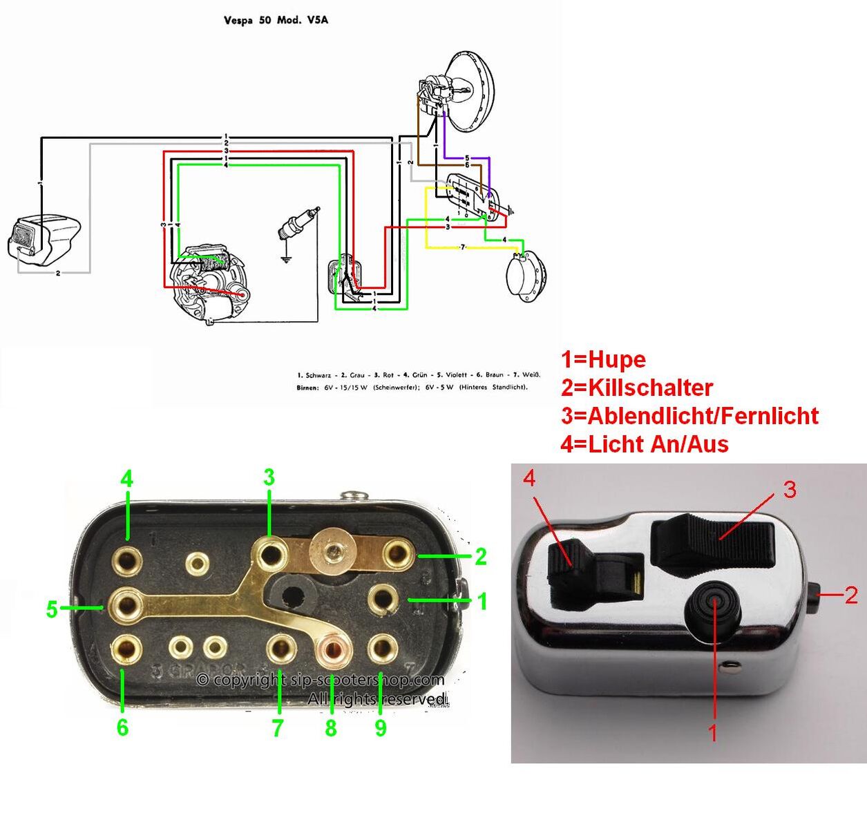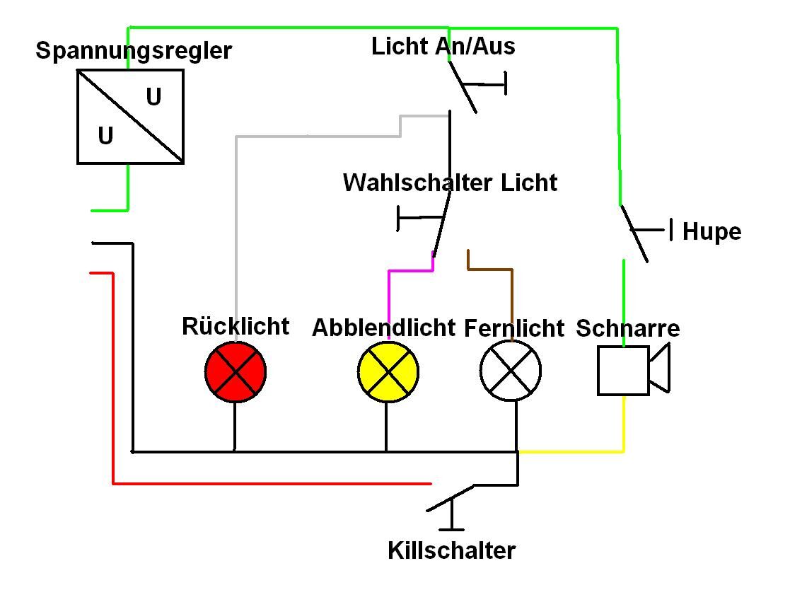bin gerade dabei die Elektrik meiner kleinen V50R neu zu verkabeln, da sie nie anständig funktioniert hat und stehe jetzt vor dem Problem mit dem Lichtschalter. Hab hier auch schon gesucht und auch einiges gefunden aber leider waren die Ergebnisse so unterschiedlich das ich immer noch den wald vor lauter Bäumen nicht sehe.