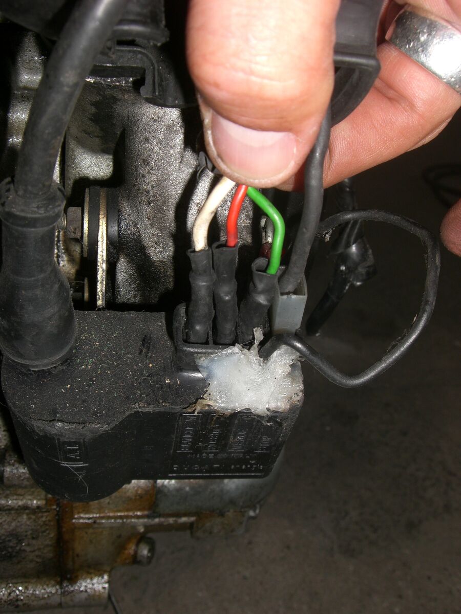 die Kabel die auf meinem zweiten Bild von unten zu sehen sind, die kommen aus dem Motor. Die Kabel oberhalb der Lüsterklemmen, ich hoffe die heißen so, gehen richtung Kabelbaum.