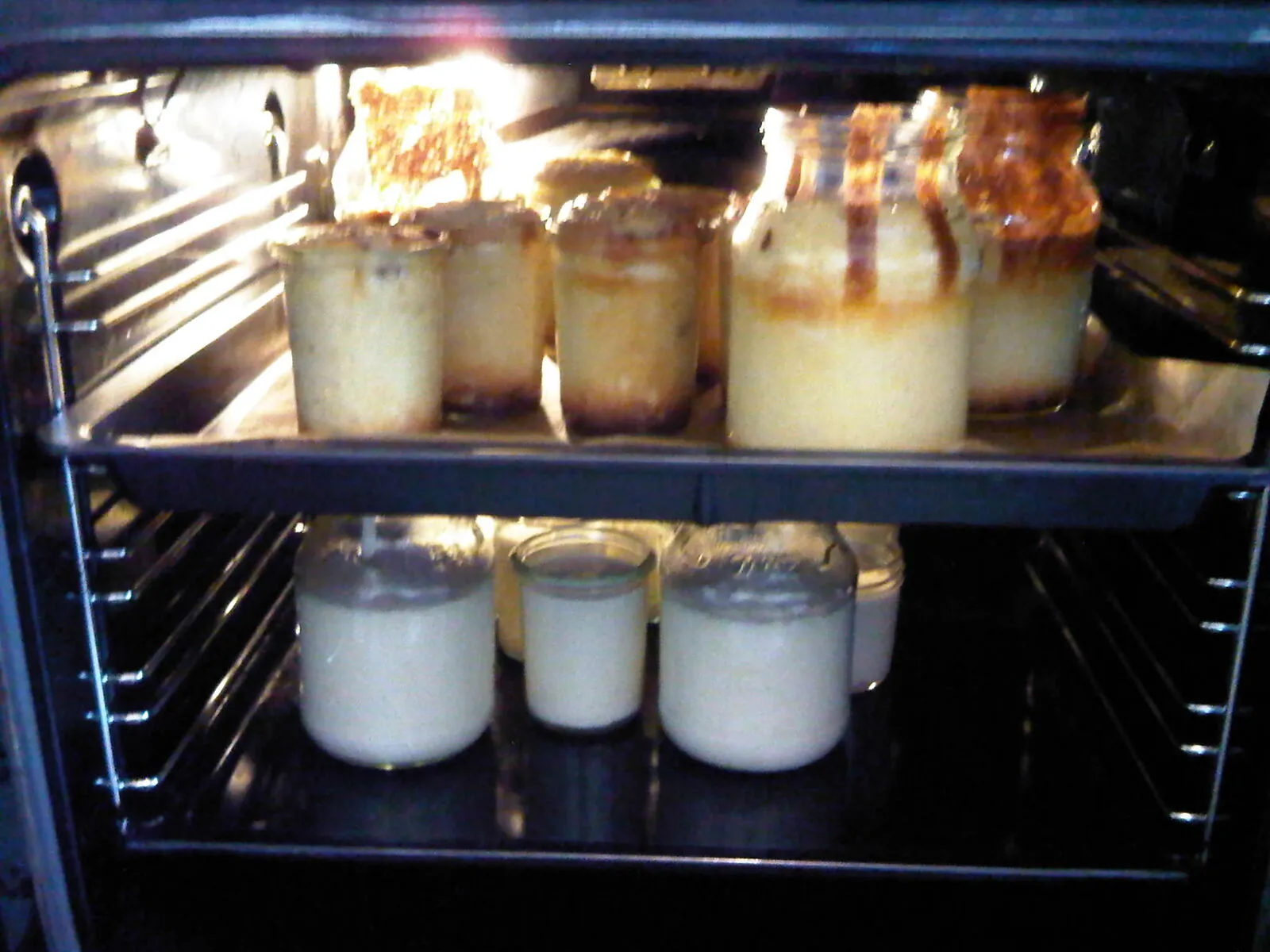 Edit meldet: Versuchskanninchen hat überlebt und Joghurtgläser sind nicht geeignet für Kuchen im Glas. Alle 5 Gläser haben einen Riss bekommen.