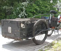 ich glaube aber eher nicht das es sich um einen Eigenbau handelt, dafür ist er zu "rafiniert" gemacht, außerdem hatte er wohl an der Deichsel mal ein Typenschild (dort befinden sich auf der linken Seite zwei Bohrungen, in einer ist noch ein Rest eines Kerbnagels zu erkennen)