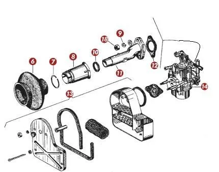 Was mir nun auffällt: meines Erachtens ist der Ansauggummi <6> verkehrt herum eingezeichnet, das trichterförmige Ende kommt nach rechts Richtung Ansaugstutzenhülse <8> und nicht nach links, wie auf dem Bild. Bei mir ist dann in der dem Vergaser zugewandten Seite des Ansauggummis Benzingemisch, als ob da eine Undichtigkeit wäre zwischen Ansaugstutzen <11> und Vergaser <14> und sich somit Gemisch aus dem Vergaser in dem Gummibalg sammelt. Wie bekommt man das dicht? Der Filzring <10> ist in dem Bild auf dem Ansaugstutzen <11> und damit von hinten in der Ansaugstutzenhülse <8>, also dem Vergaser abgewandten Seite. Bei mir war der Filzring <10> aber in der dem Vergaser zugewandten Seite der Hülse <8>, also in dem Bild links davon. Was ist nun richtig?
