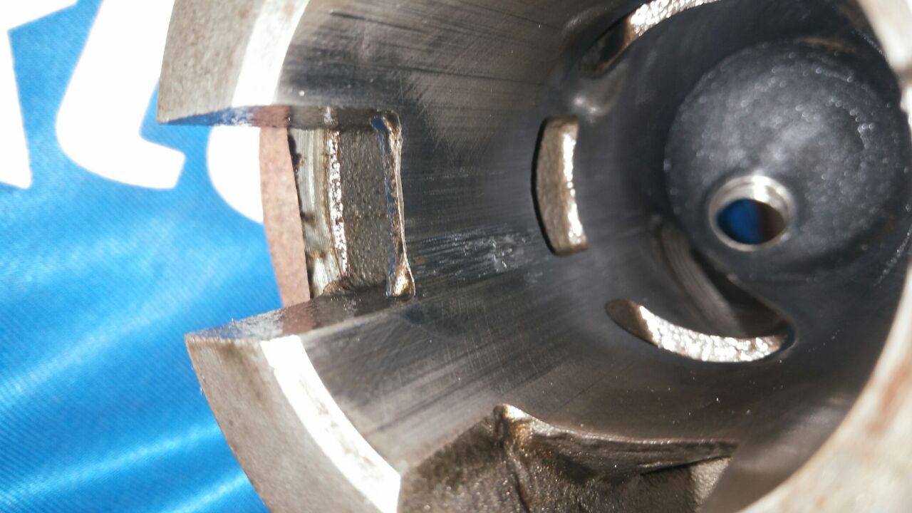 Jetzt habe ich mir noch einmal den Kolben und Zylinder angeschaut. Leider habe ich keine Vergleichswerte. Sieht dieser noch in Ordnung aus oder sollte ich komplett alles tauschen, also Zylinder + Kolben? Wie auf den Bildern zu sehen sind deutliche Riefen im Zylinder und Kolben zu sehen. Was würdet ihr mir raten?