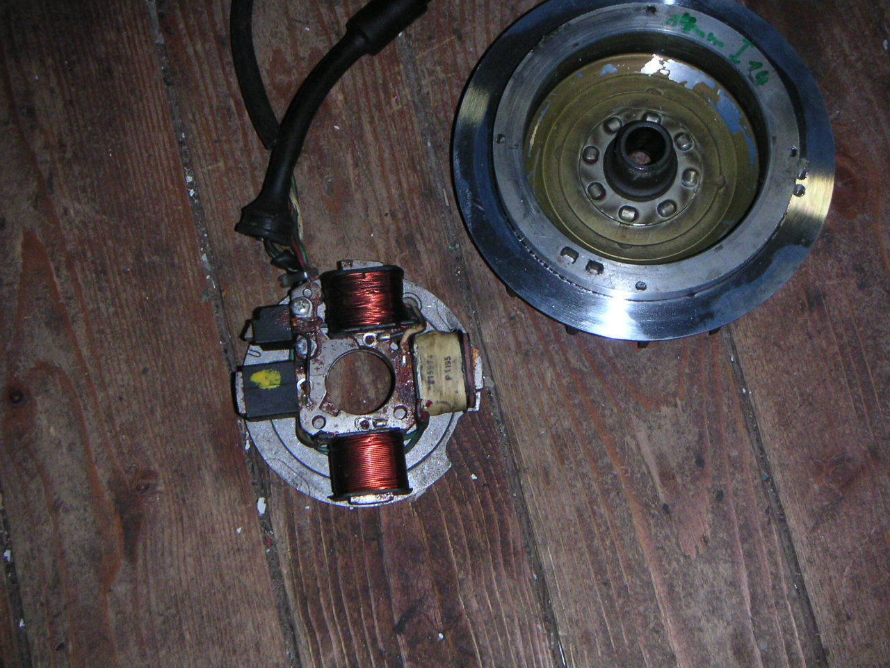 Ich habe eine PK 6V Zündung spitzer Konus, ein passendes Lüfterrad und eine E-Platte mit 3 Kabeln da.