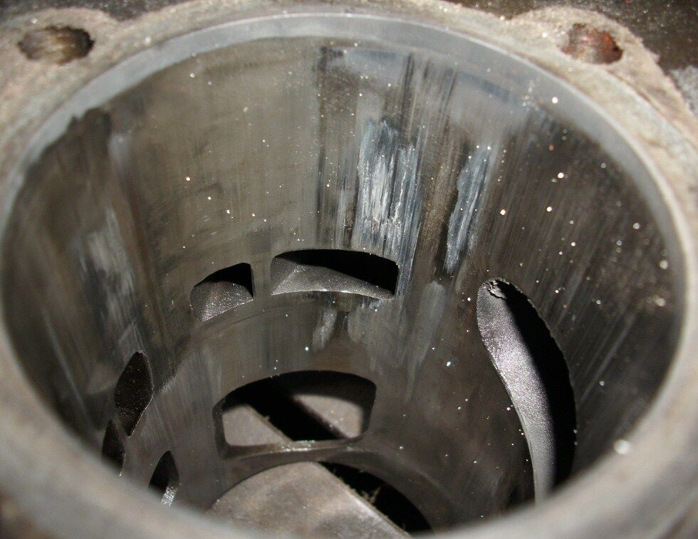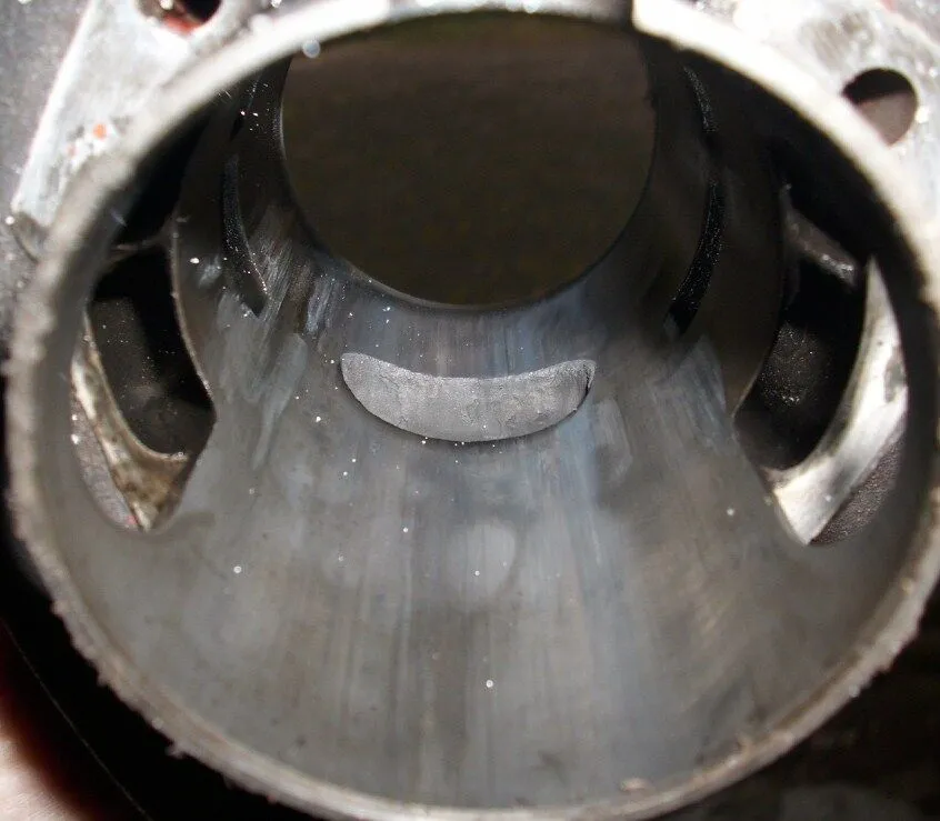 Auch ist der Auslass original. Die Wärme staut sich dann da. Und dann noch der blöde Asso-Kolben. Zusammen mit dem kleinen 24er ist das nix.Ich werde nun den Polini bearbeiten, den Außlass aufmachen, montieren mit Fuß- und Kopfdichtung und den Gravedigger-Kopf auslitern.