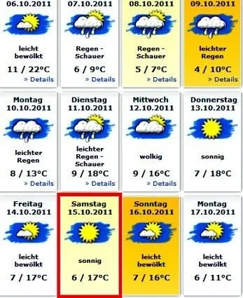 Zu diesem Termin sieht der Wetterbericht sehr gut aus. Der Herbst soll wieder mit wärmeren Temperaturen zurückkommen.