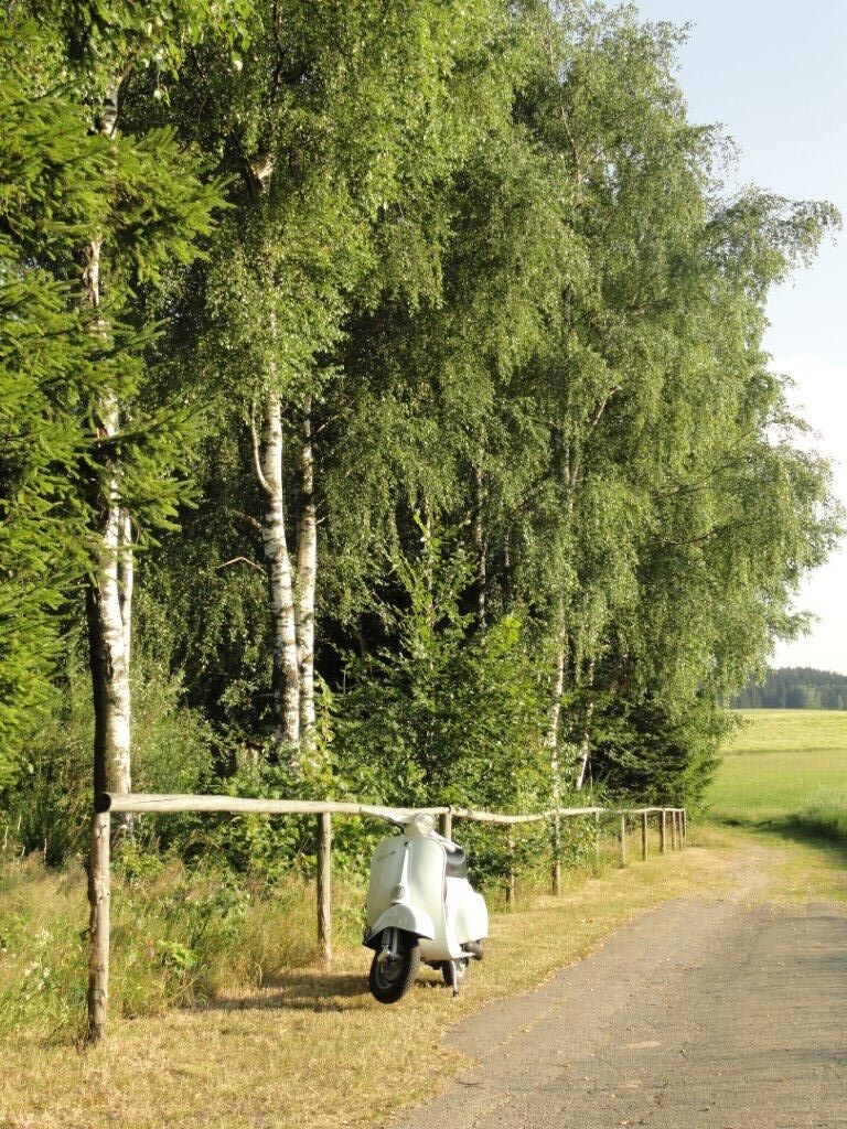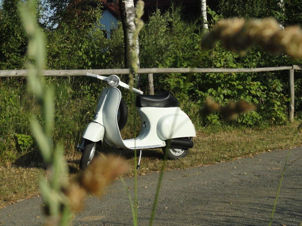 tja und so durch Bekannten kam ich auf die Vespe und dann wie imer ZUFALL der Scheunenfund!!!! Hab an dem Teil ca 9 Monate gebaut immer Stück f. Stück...nicht immer hatte man Zeit aber nun kann ich das Fahren genissen.,..