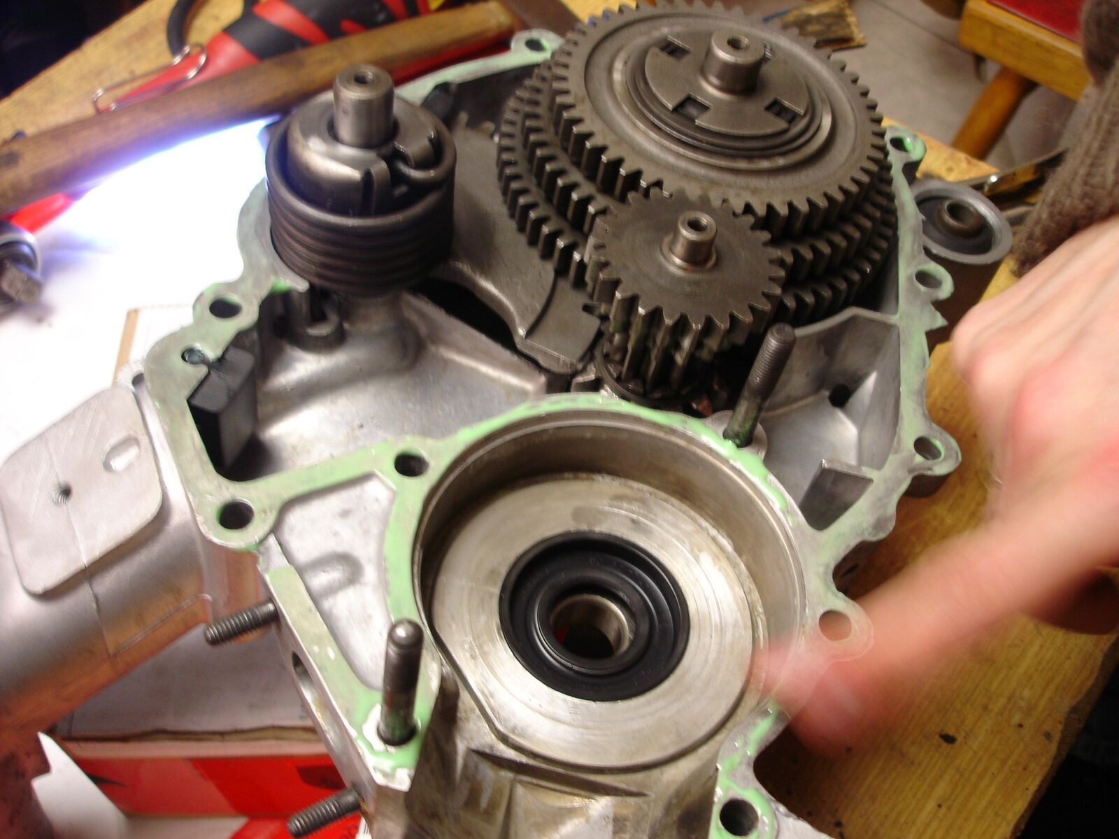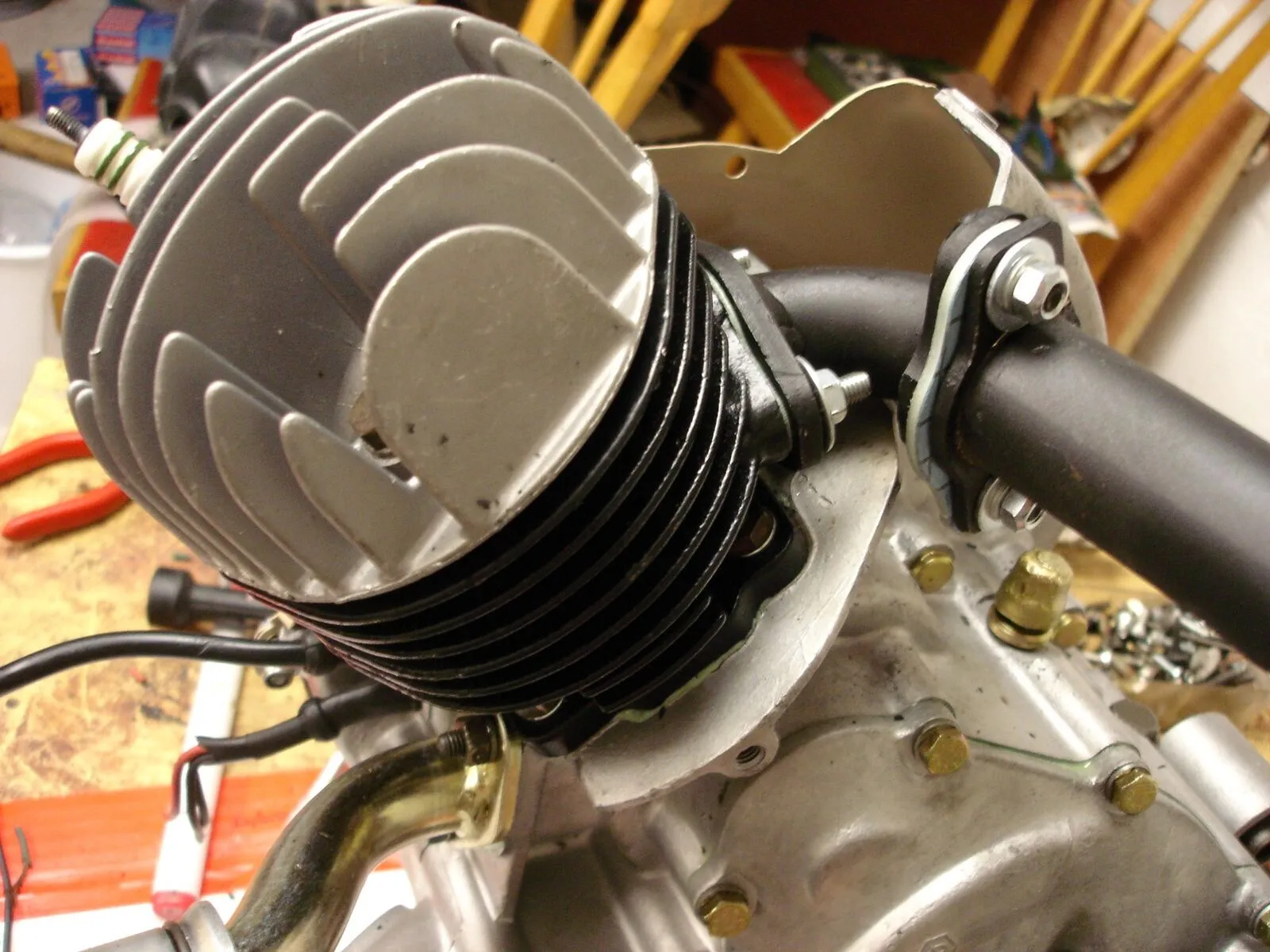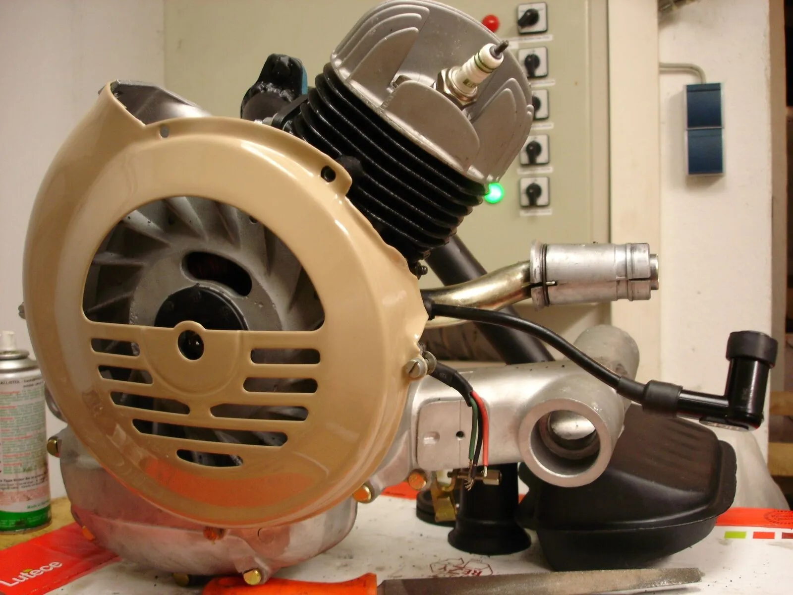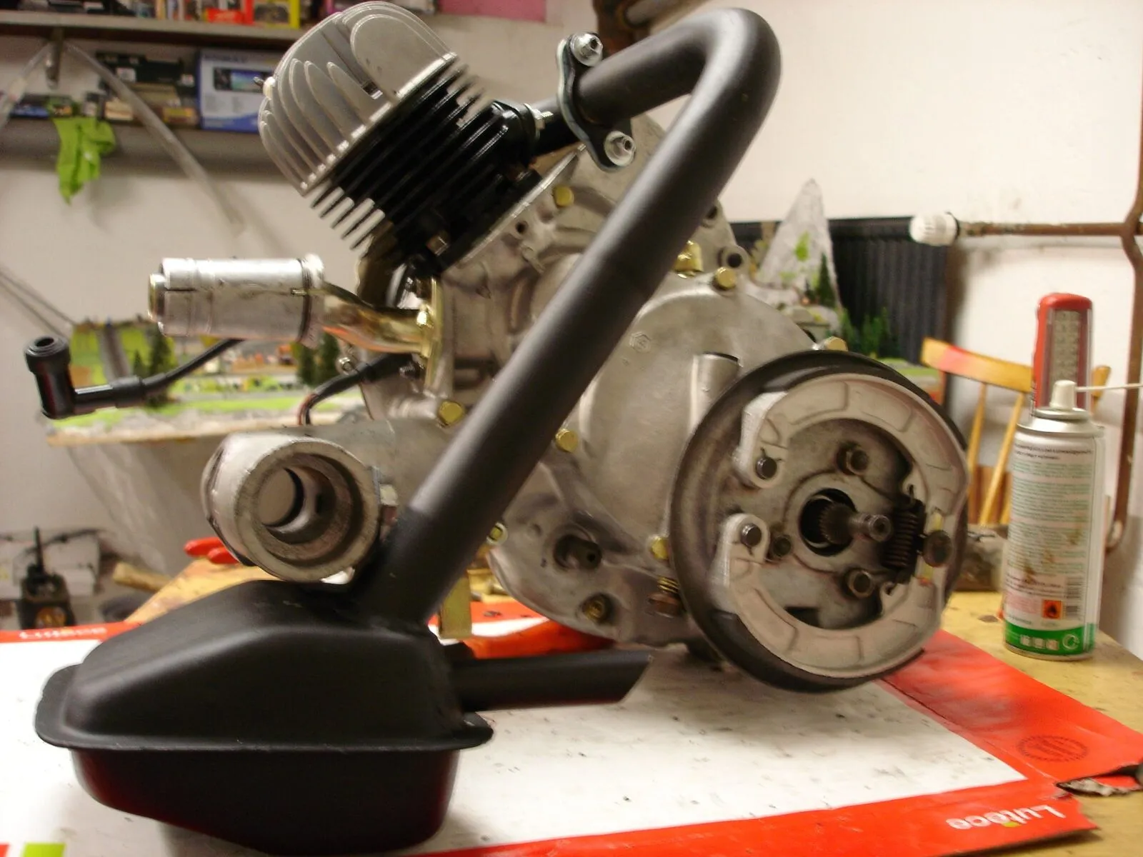 Ja und Samstag gings ans fertigstellen des Motors....Hutze und so drannschrauben..Kickstarter,,und hintere [lexicon='Bremstrommel',''][/lexicon] verbaut ![]()