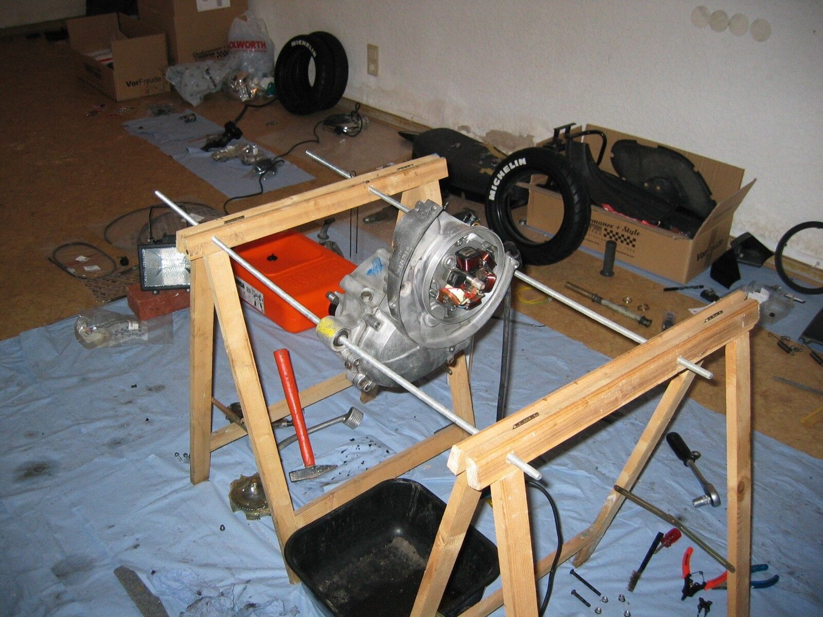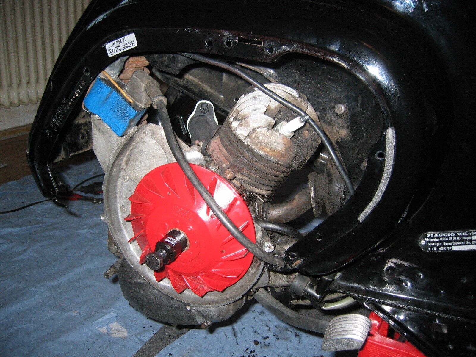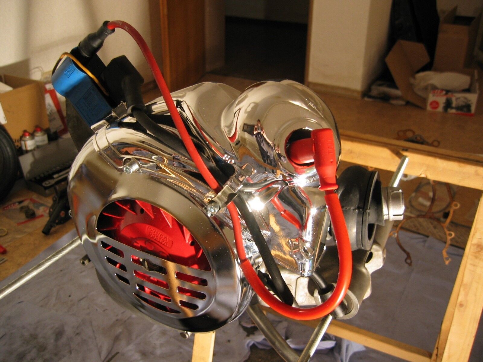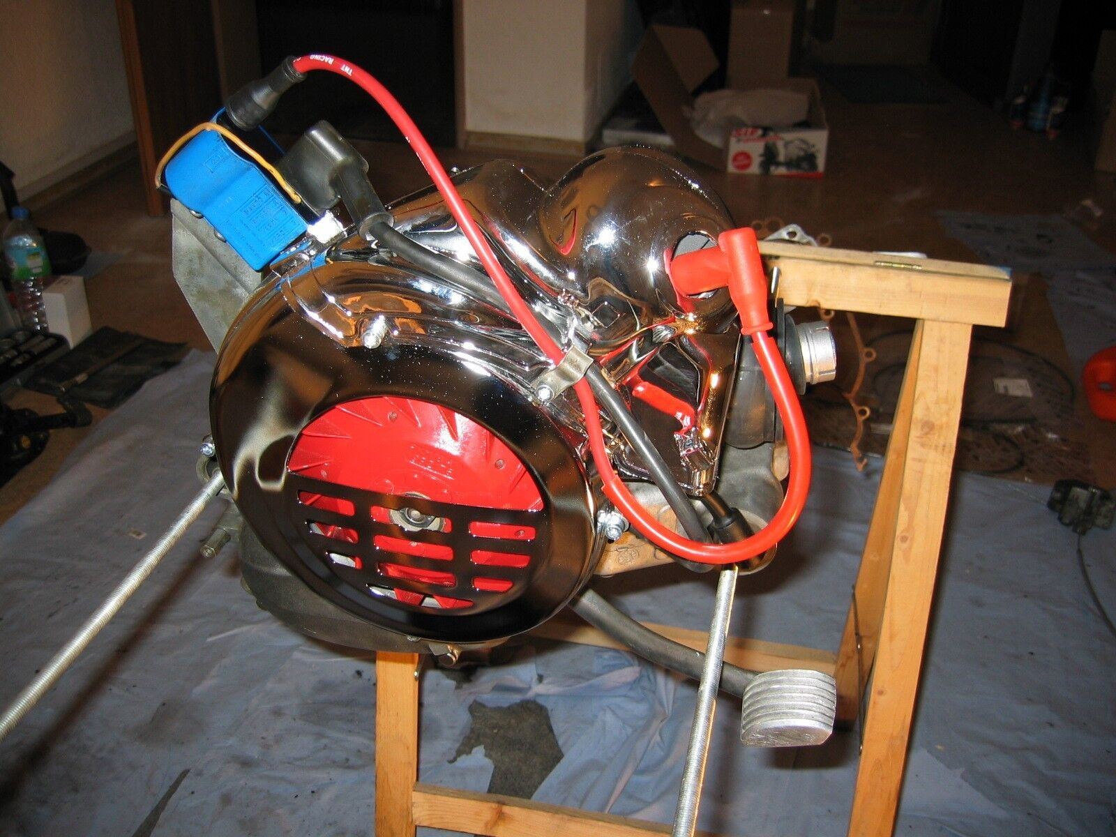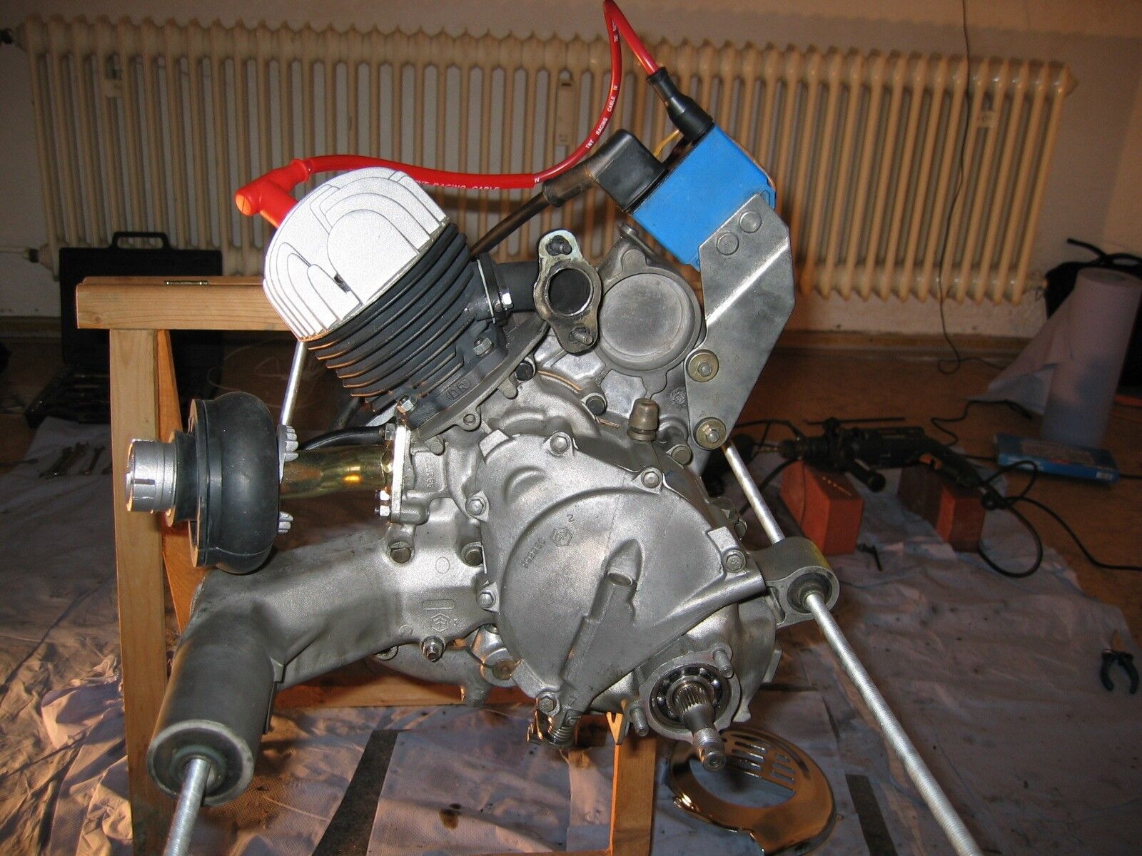Also als ich die Vespa im Oktober 2009 beim lackierer abgegeben habe, hatte ich Zeit mich um den Motor zu kümmern. nachdem ich hier im Forum mir einige Informationen eingeholt habe war klar wie mein Setup aussieht. Ein 85er DR ein Sito Plus (Wegen dem Ersatzrad und so) und härtere Kupplungsfedern und eine 2.86 übersetzung dazu ein Delorto 19.19 Vergaser und mein Setup war fertig. Mein ganzes Projekt habe ich nur die [lexicon='Vespa Bibel',''][/lexicon] benutzt und einmal Chefkoch gefragt wegen der Kupplungs Druckplatte (habe sie nicht auf annhieb abbekommen) auch hilfe von anderen hatte ich nicht.
