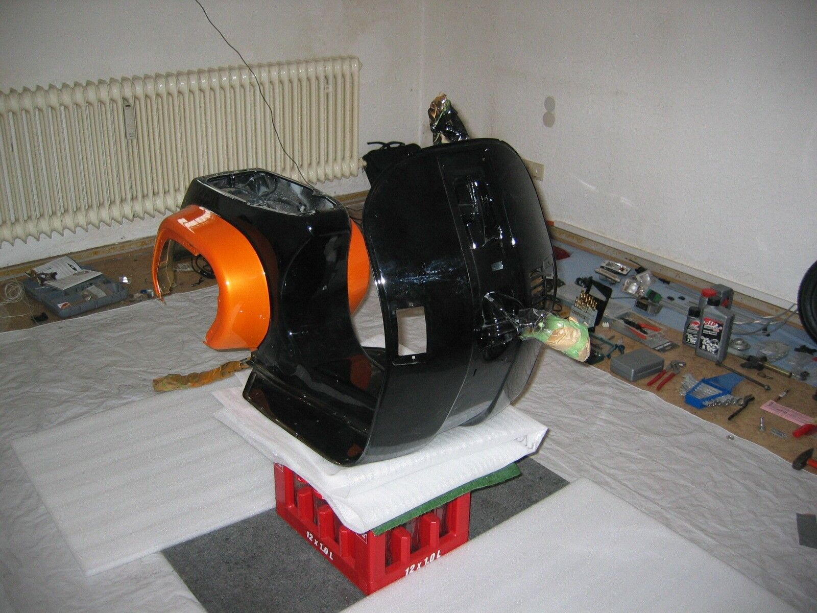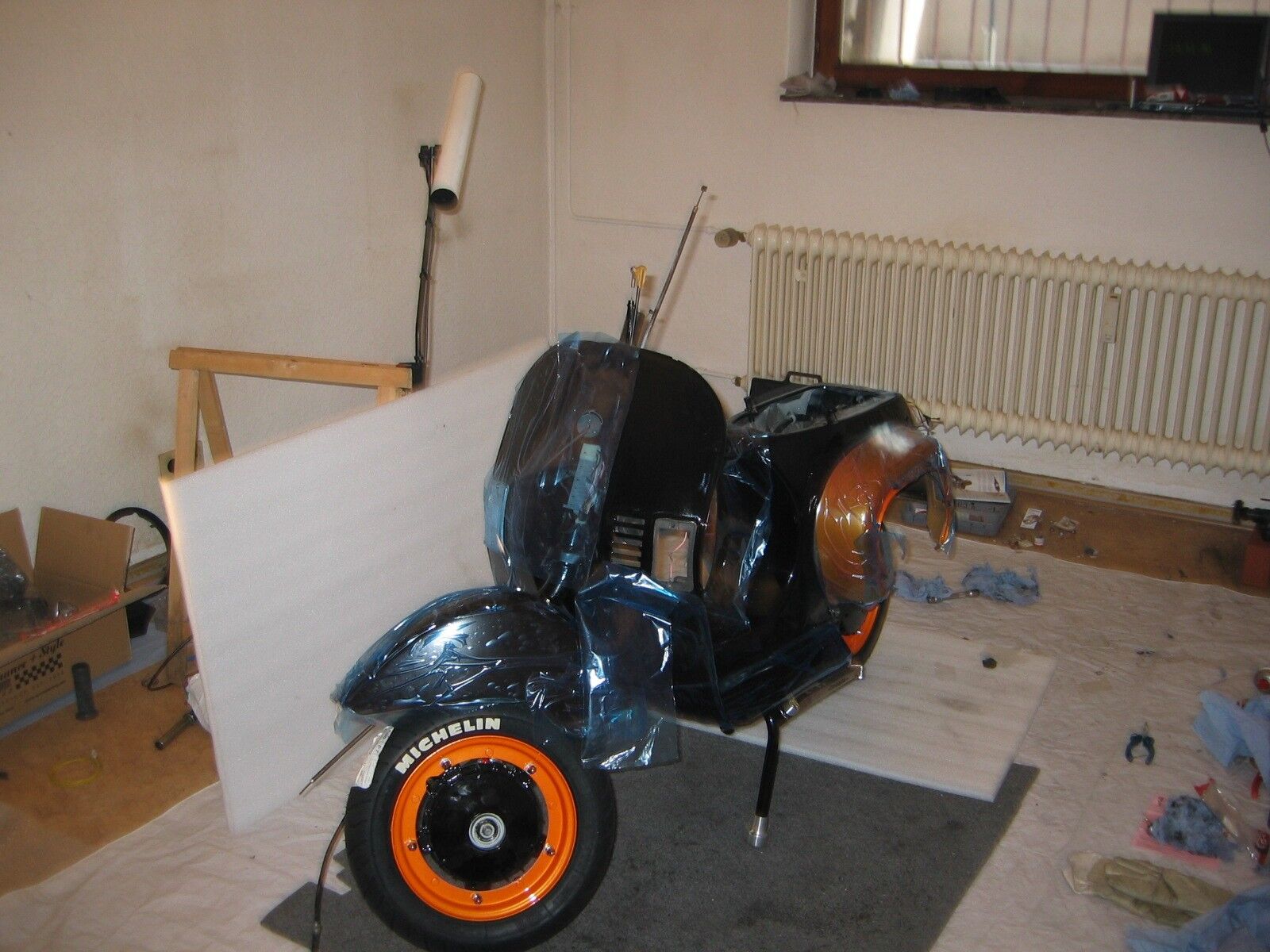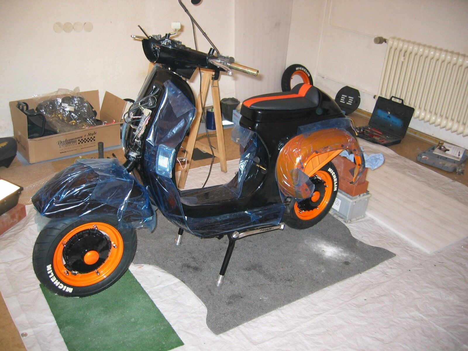 Nun haben die Vorbereitungen angefangen das ganze musste ich mir ja bildlich vorstellen wie später der Roller lackiert aussehen soll