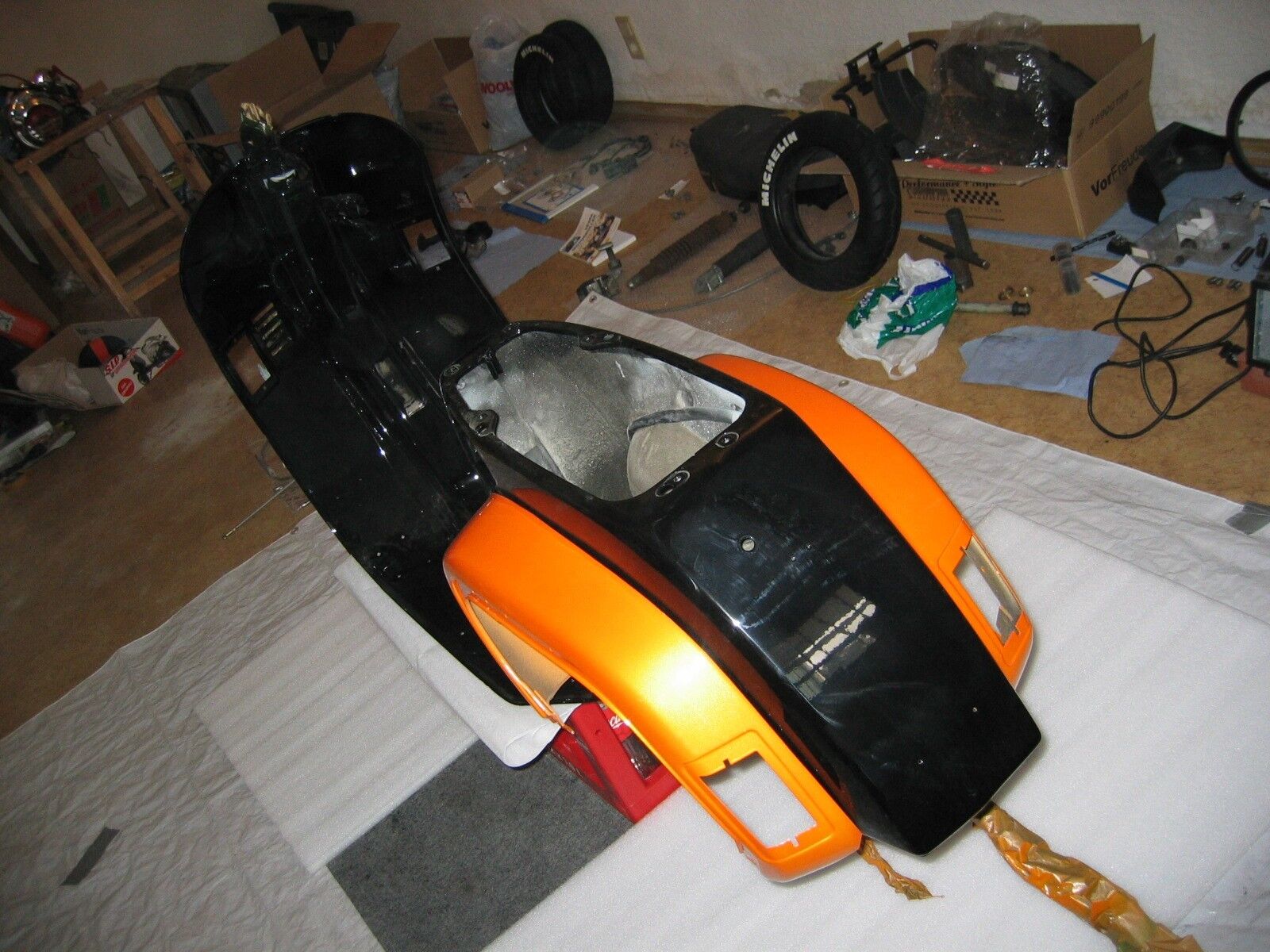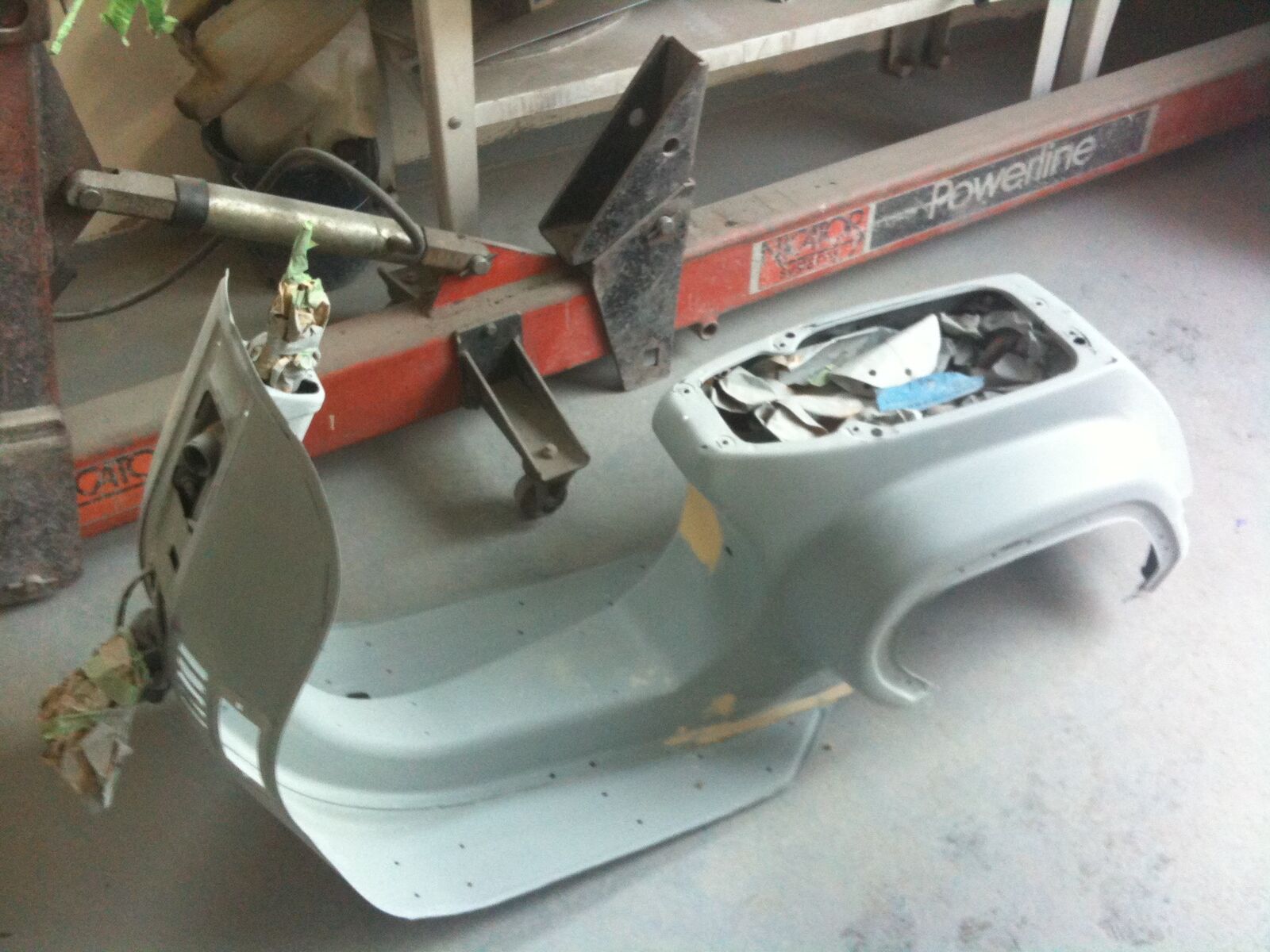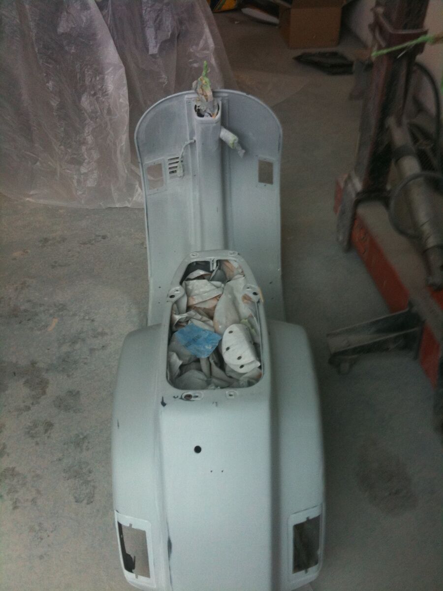 Nun haben die Vorbereitungen angefangen das ganze musste ich mir ja bildlich vorstellen wie später der Roller lackiert aussehen soll