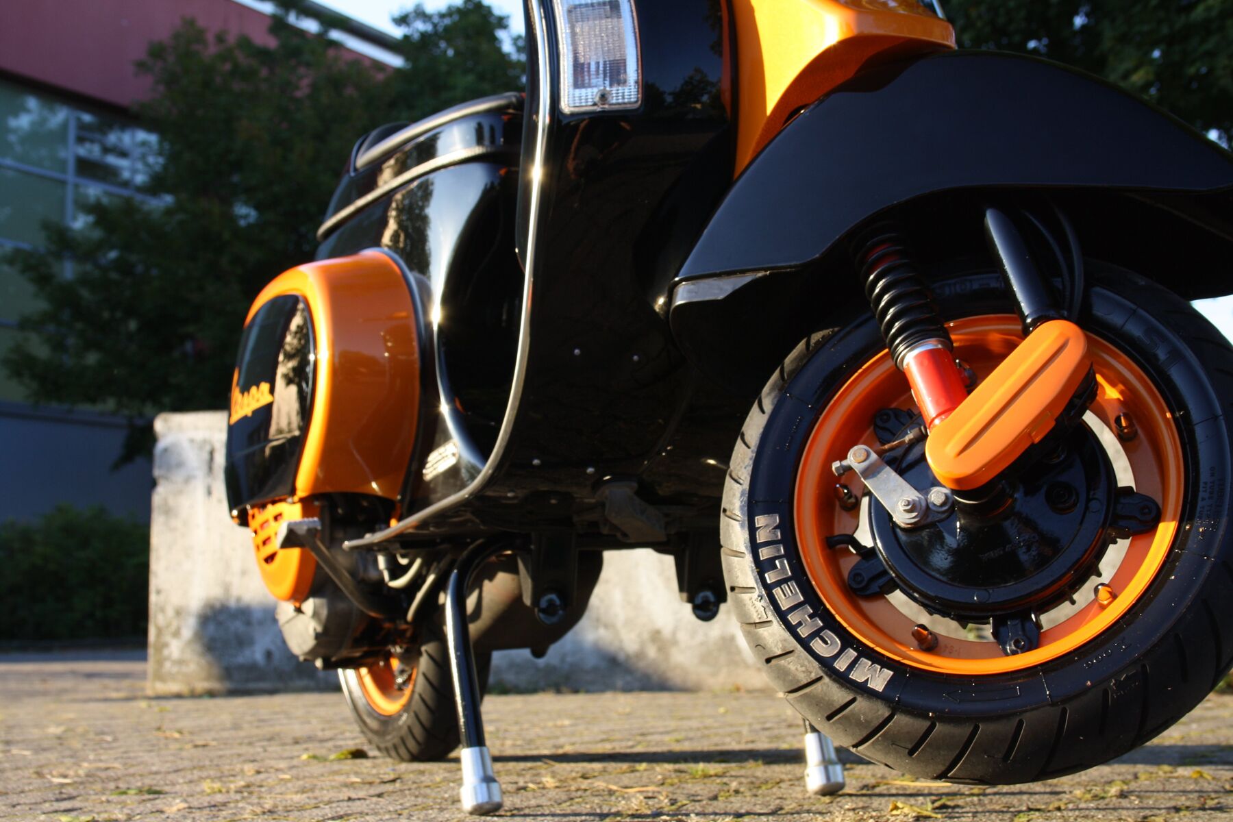 Welche Farbe hast du für die Bremstrommeln genommen? Bremssattellack oder den Lack der Vespa ?