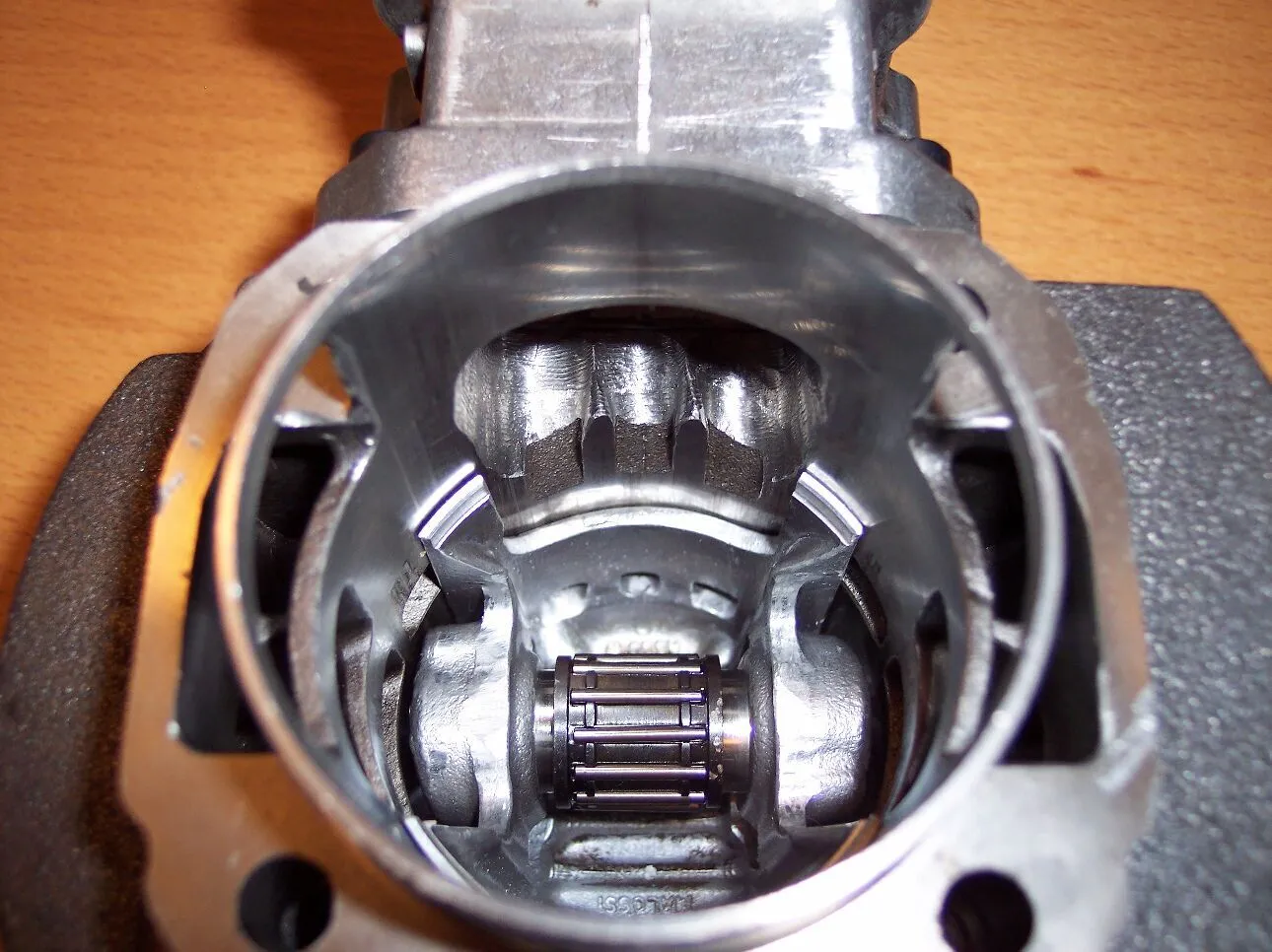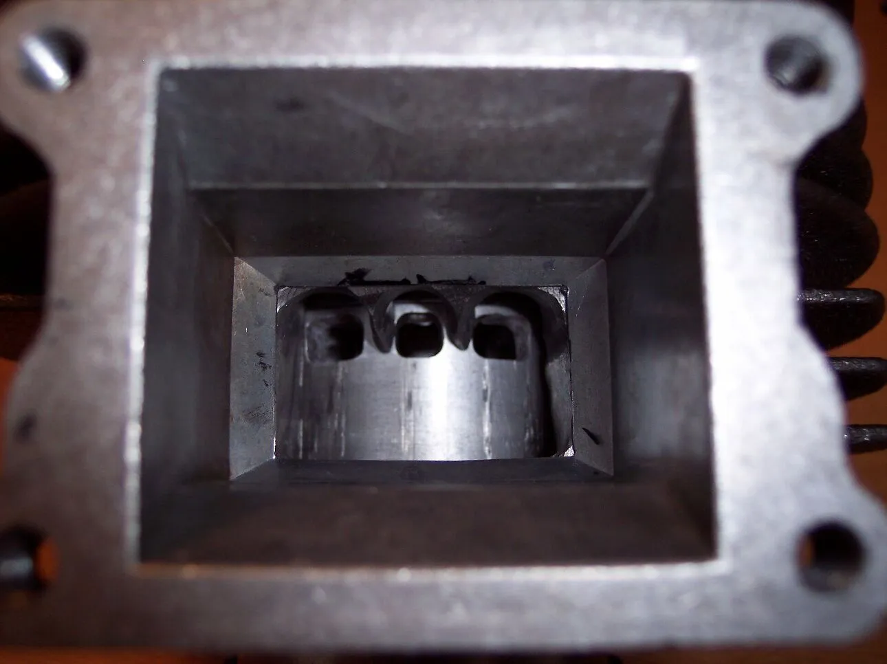 Danach musste Dir auch den Kolben vornehmen.Seitlich kannste die CVF-Fenster erweitern, sieht man am orig.Kolben gut, da sind schraffierte felder dran,die kannste weg Dremeln.Vor allem musste einlasseitig am Kolben das untere Stück wegdremeln, da das gerne mal abbricht und Dir dann nen Totalschaden beschert.