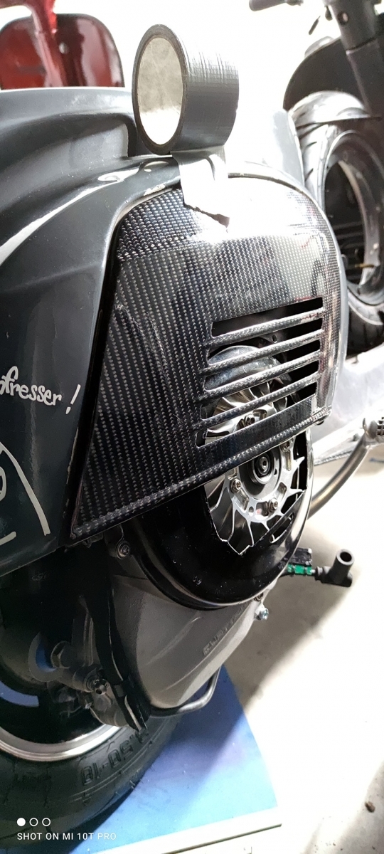 Leider passt dank dem Schloss mein Seitendeckel nicht mehr. Aber der Carbon geht Arsch-auf-Eimer ran. Muss nur die Halter passend anbringen. Zudem musste ich vom Lüfterrad das Gitter teilweise raus nehmen (wird noch schöner geschliffen)