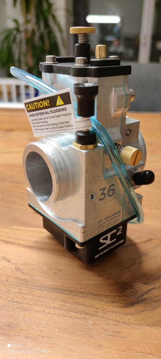 Nach langen hin und her fliegt dann noch der 35er Keihin wieder raus. Wenn ich schon alles neu investier soll es am Vergaser auch nicht mehr scheitern. Hab mir den Smartcarb SC2 36 gegönnt. Ansausgstutzengummi lass ich mir gerade von LUZ Racing drucken. Ich steh auf so nen Scheiß