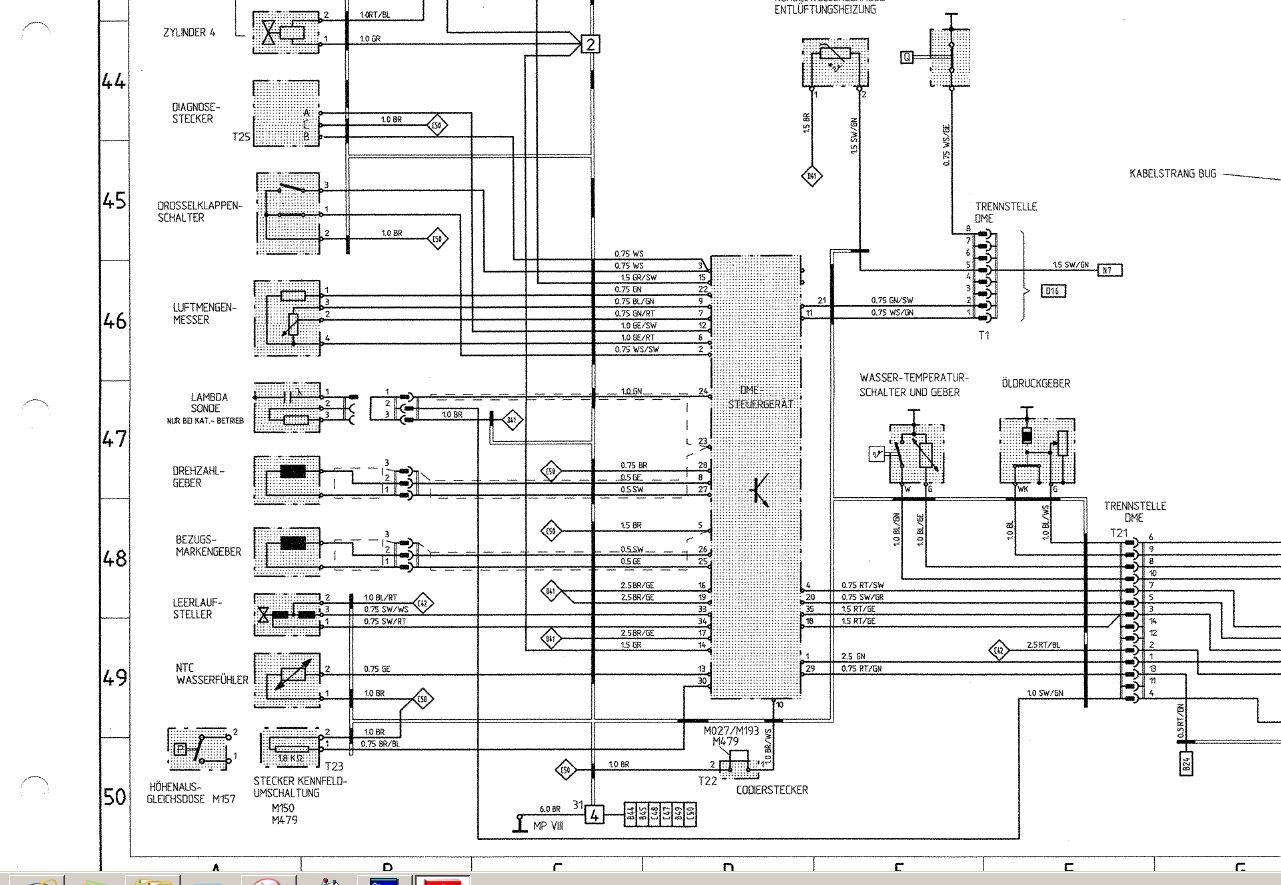 Hi Chup, vor dem Auto hab ich keine Ahnung, aber der spaß ist doch fast überall gleich. Hier mal der Planteil von meinem Auto, in die DME geht noch ein bisschen mehr rein als das von Dir beschriebene. Alle diese Geber werden über Kabelstecker geführt, die oft, weil korridiert, einen Fehler verursachen. Klar dann stimmt der Wert nicht mehr. Was Du noch nicht untersucht hast, Drosselklappenschalter, Höhenausgleich, Regensensor, Du musst leider jedes einzelne Teil und die Kabel auf Fehler untersuchen.