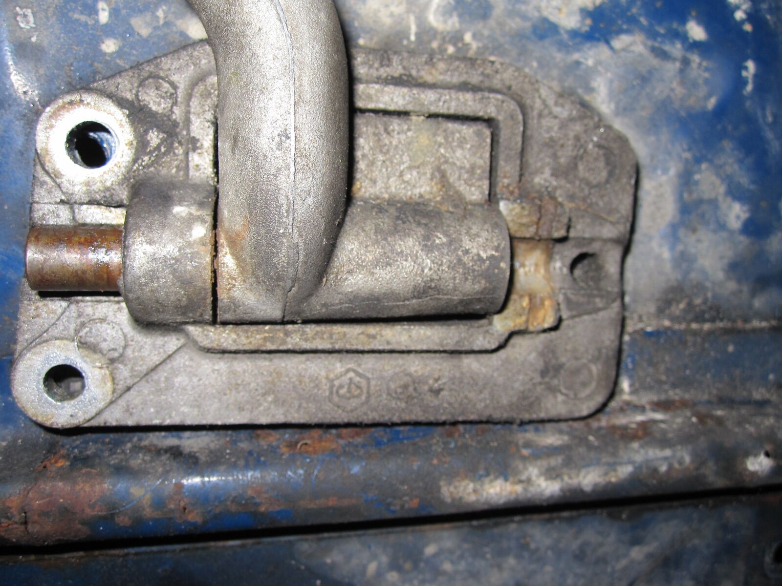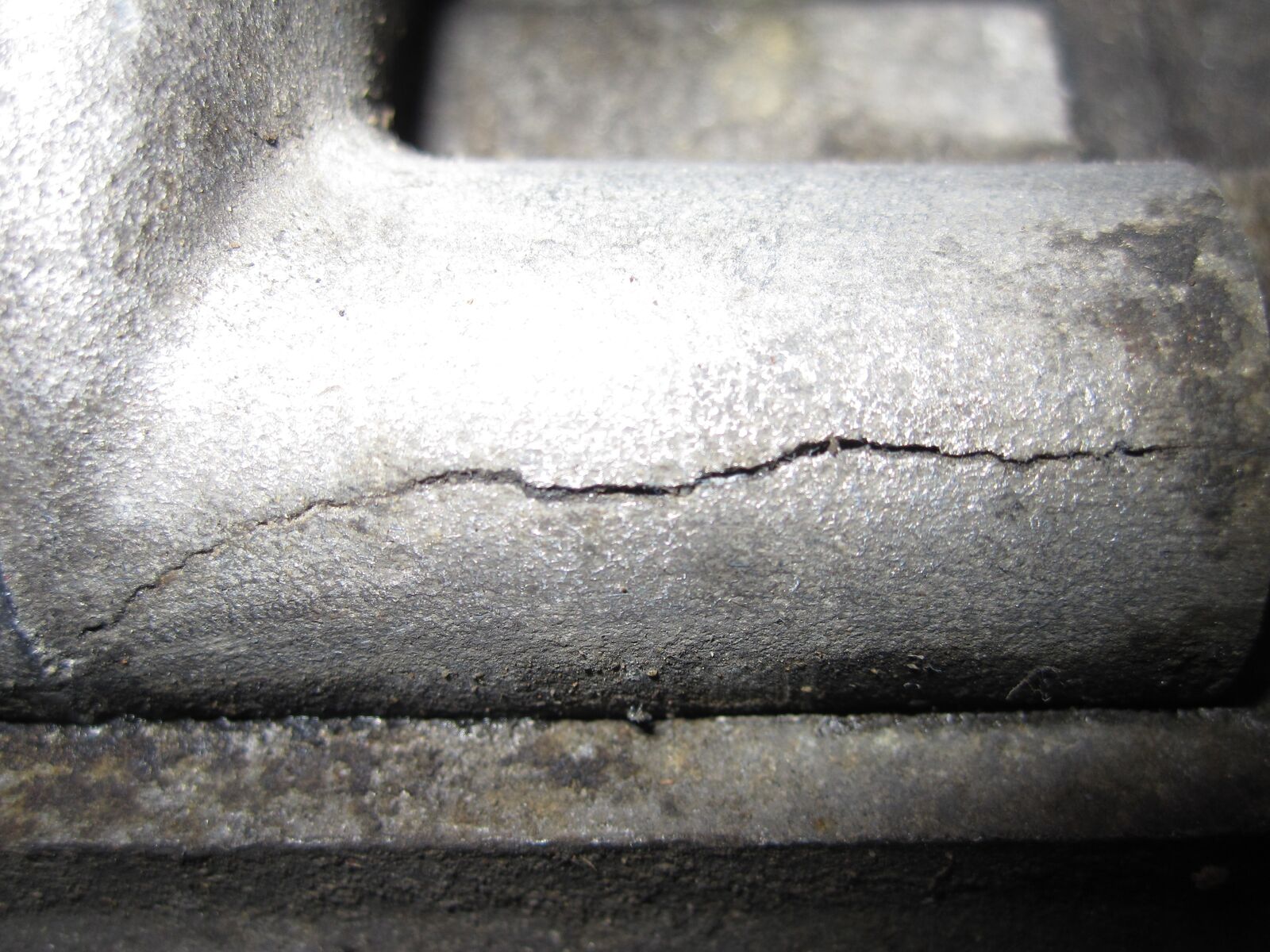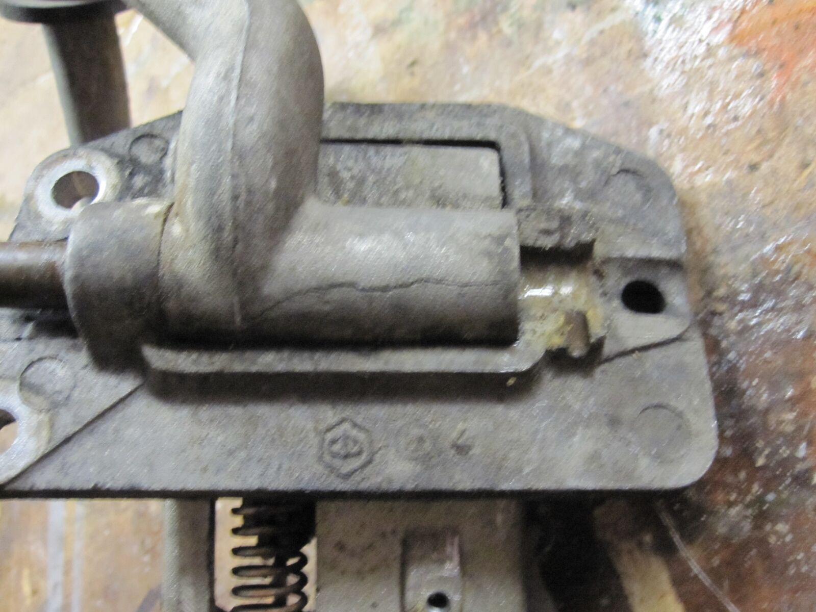 Die Führung auf der Ankerplatte für den Bolzen ist abgebrochen und das Pedal hat ein Riss quer rüber.