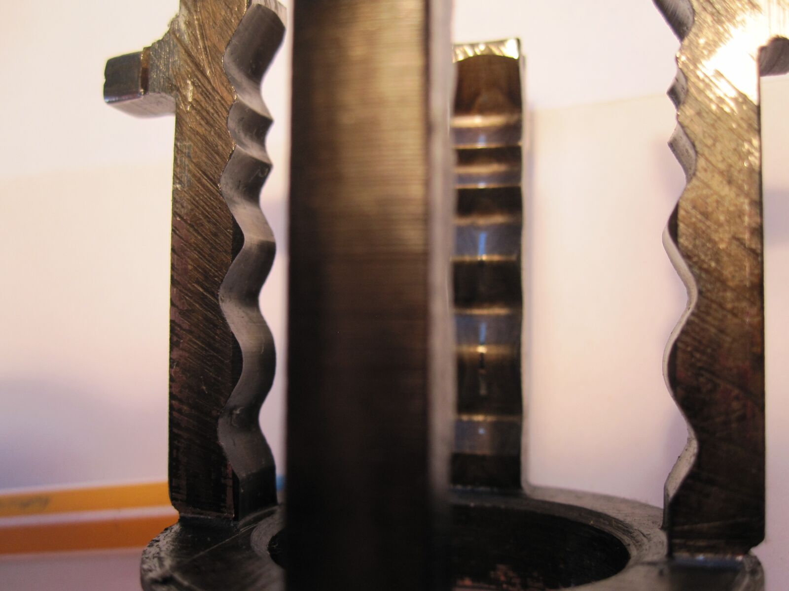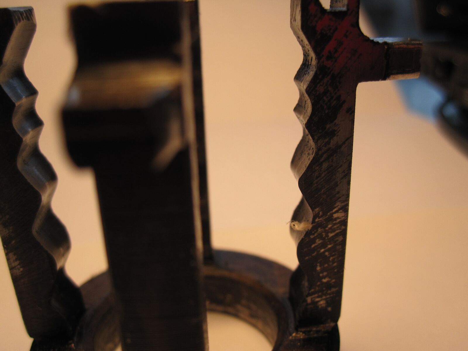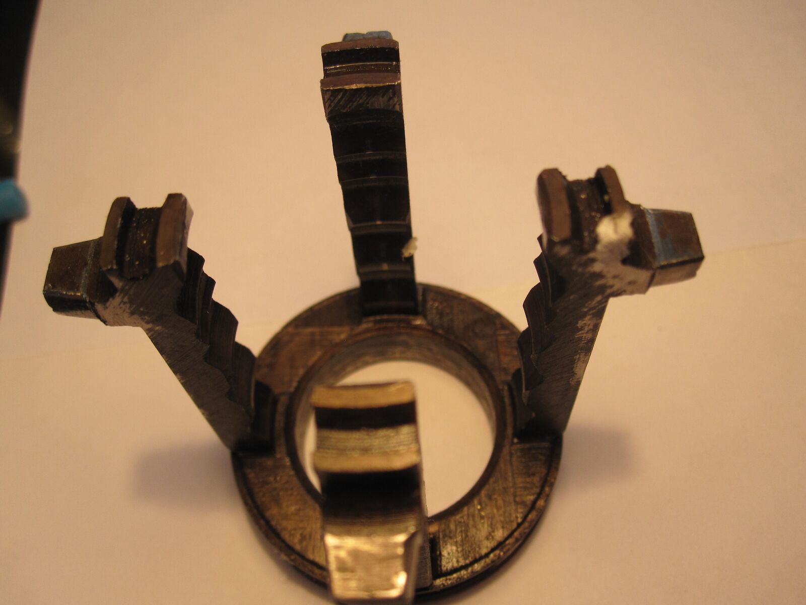 hat an zwei Armen Spuren der Kugeln der Antriebswelle.