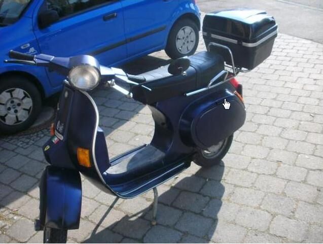 Also die Vespa hat 21.000 km auf der Uhr, die Gänge lassen sich nicht mehr richtig schalten! Zudem ist die Vespa mal auf dem Anhänger umgefallen und daher am Bodenblech vorne rechts und an der Seitenbacke rechts etwas eingedellt! Und wie man sieht ist der Lack nicht mehr im besten Zustand!