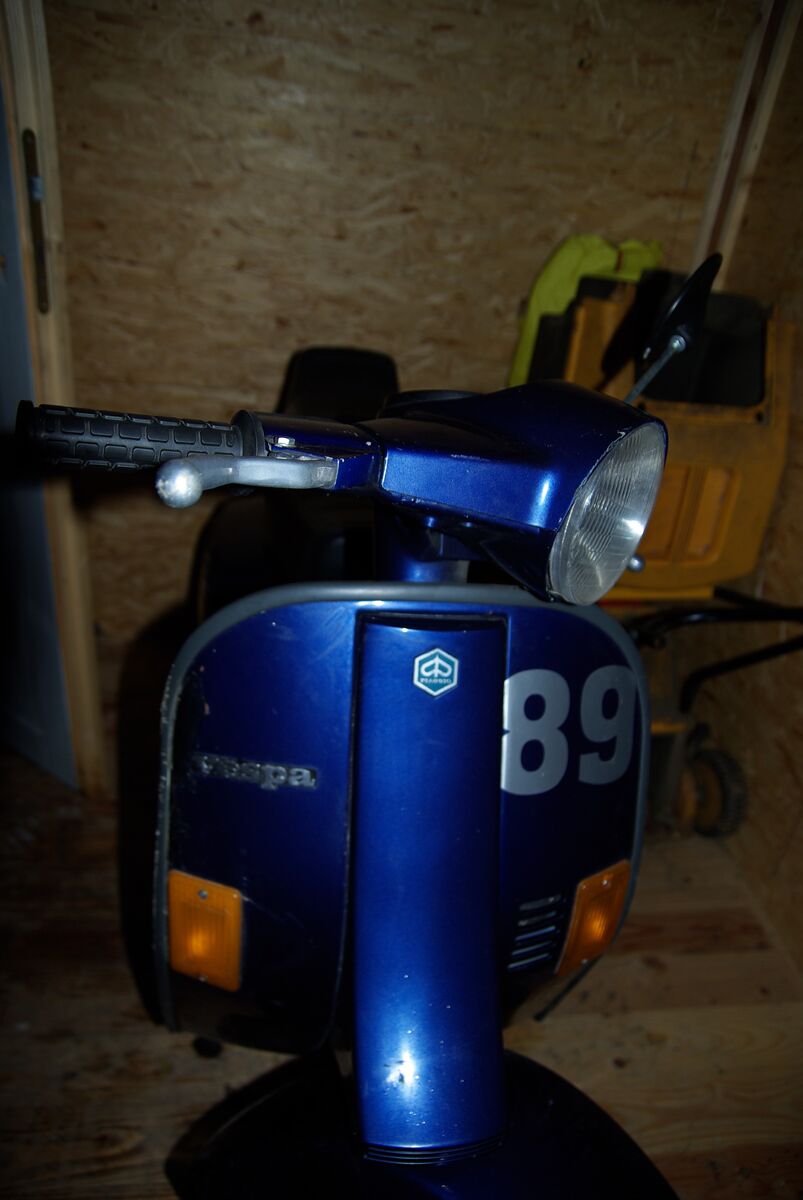 aber links, bei dem Vespa schriftzug fehlt ein stück vom metallic lack. Da wurde dann mit einem dunkleren Blau drüber lackiert. man erkennt es ungefähr. sorry für des bild. -